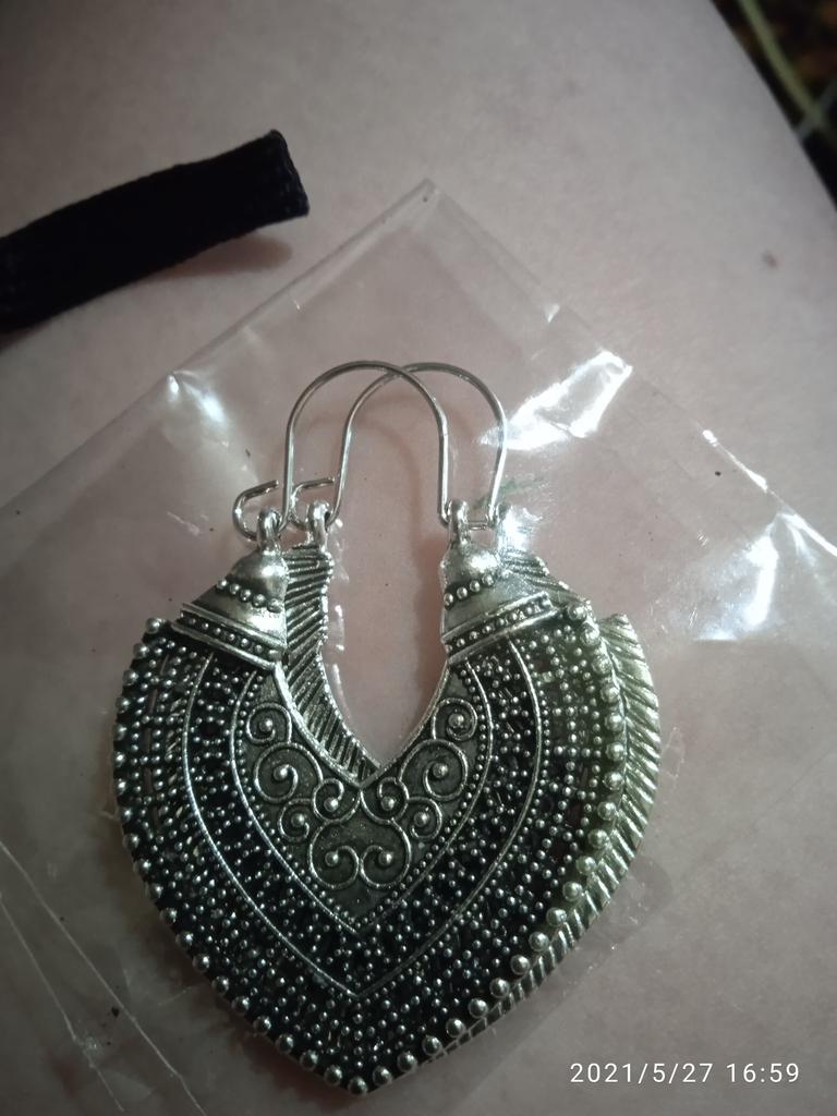 Fashion Antique Silver Opening Heart-shaped Carved Flower Hollow Out Earrings Jewelry