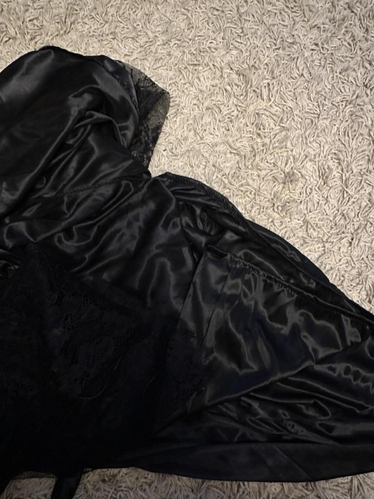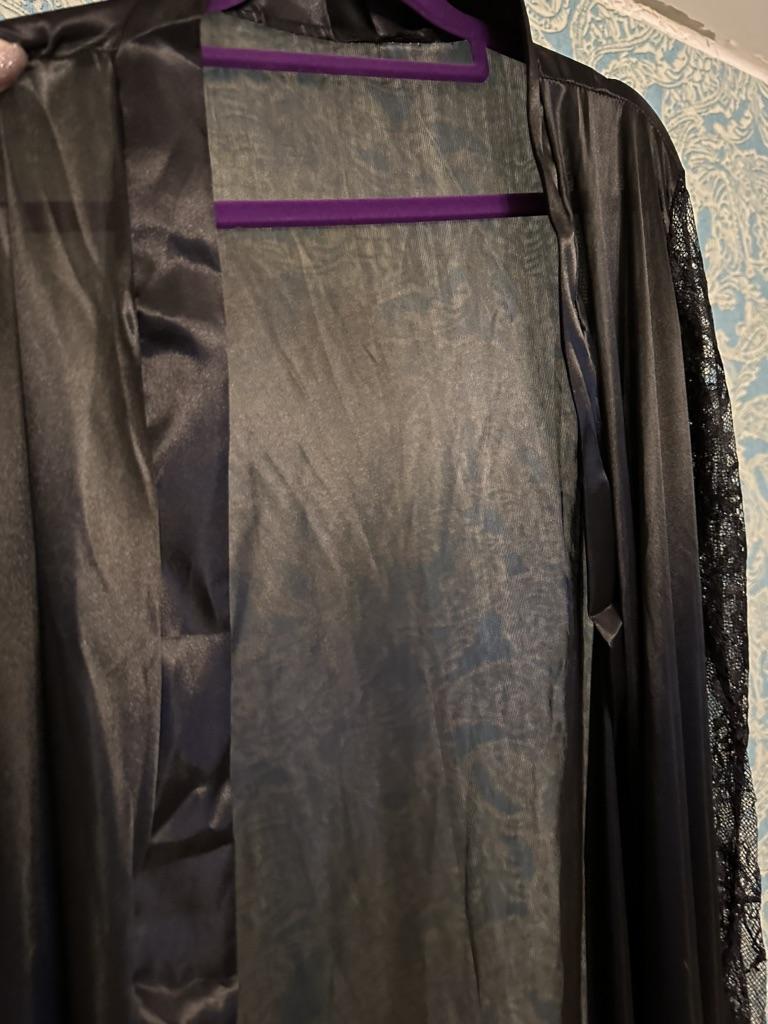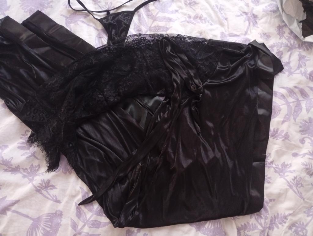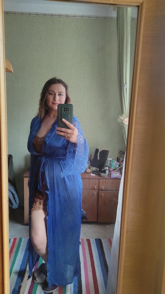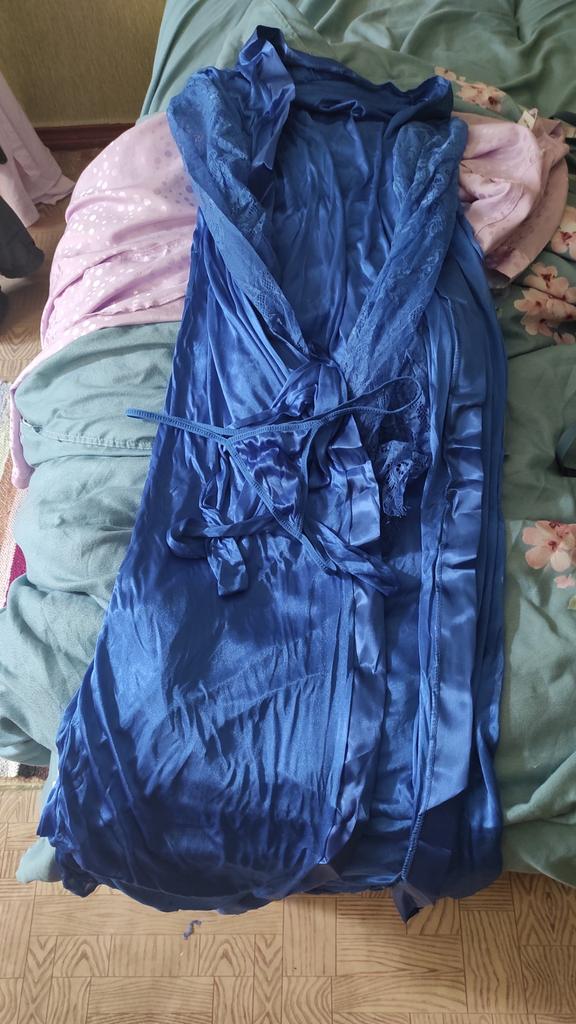 The robe is beautiful. In addition, there are panties. Absolutely transparent, for temptresses. Height above 160. Threads stick around