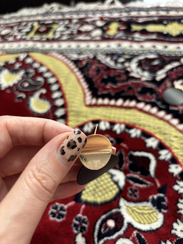 Nice earrings, the metal turns black over time on the side of the ears, but overall good quality and for such a price I've been using them for quite a while