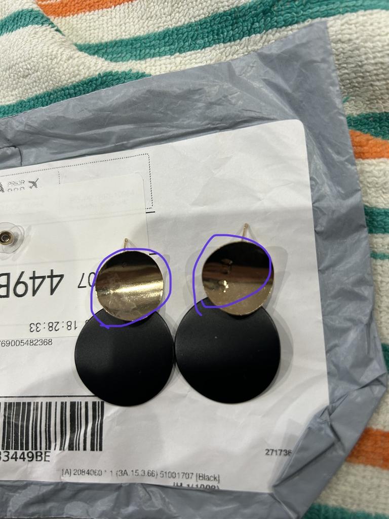 The earrings are very nice, only one of them has this flaw on the gold side. A bit disappointed, but for their price it was to be expected