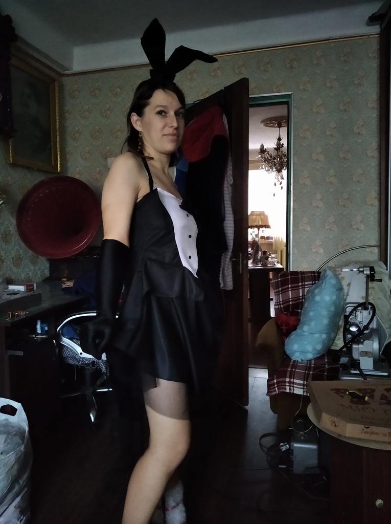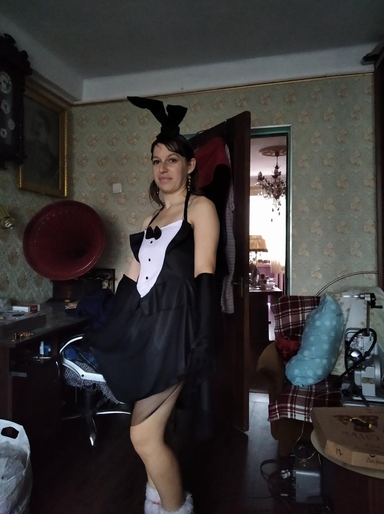 Women 3Pcs Bunny Gloves Headband Tuxedo Dress Cosplay Halloween Costume Set
