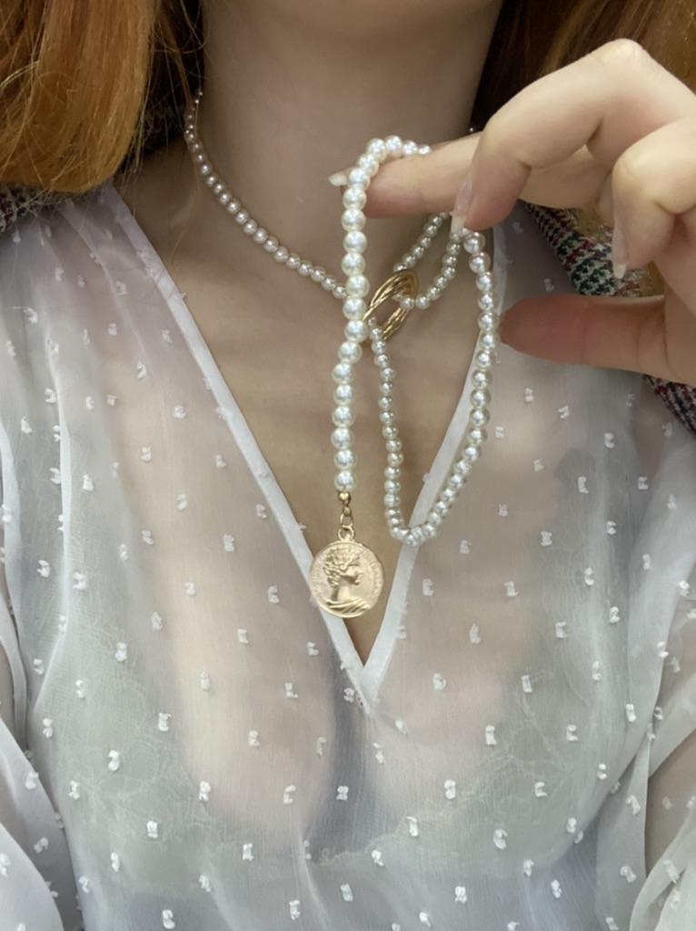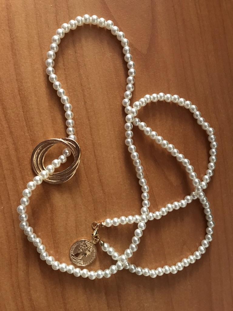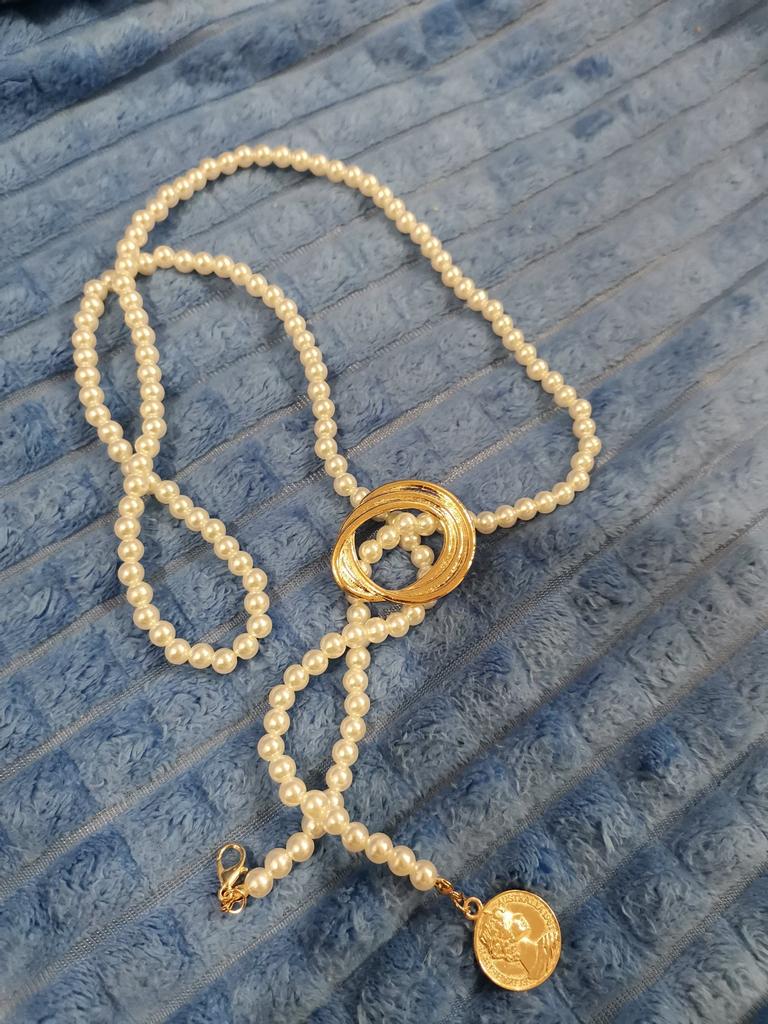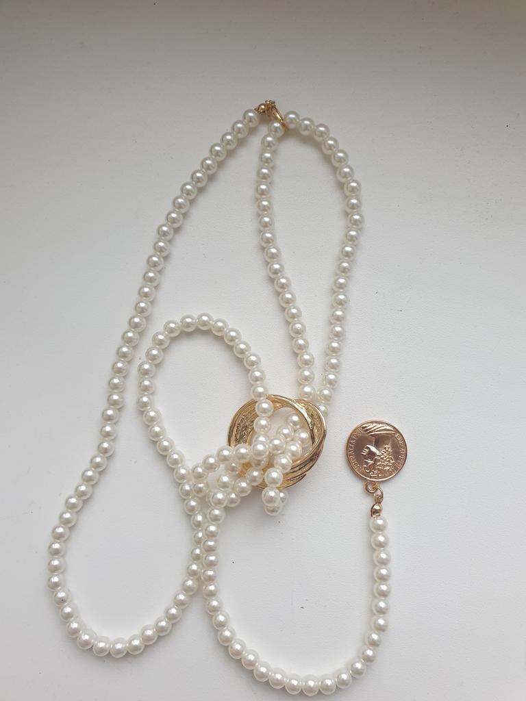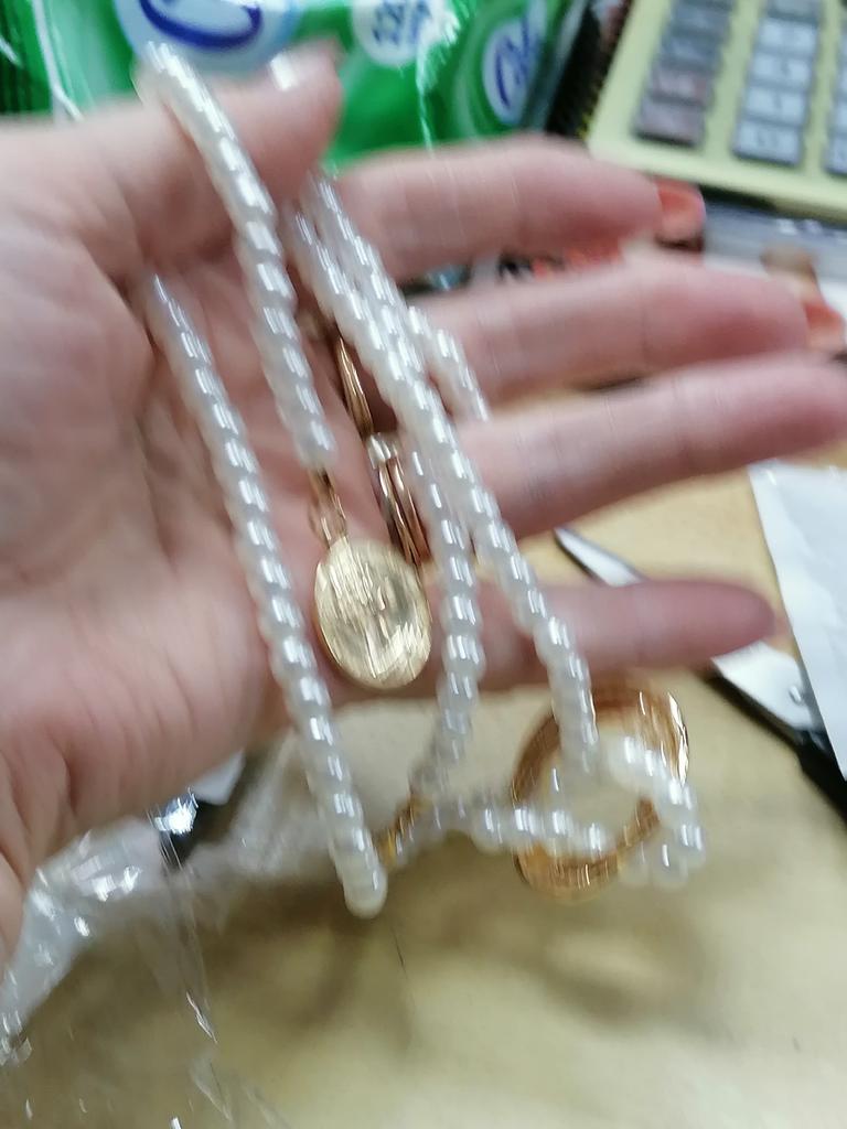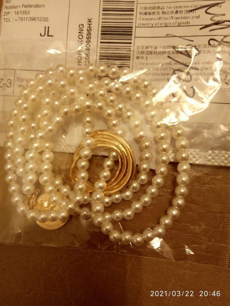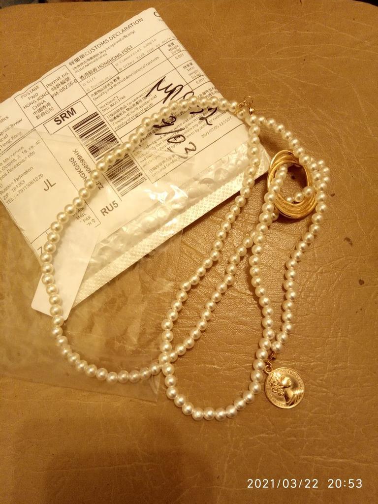 I received the goods in a month The track was tracked 🔭 The arrival at the point of issue was announced by sms 📲 Packing is good: air-bubble envelope + individual package. 👍 Value for money is met. A series of artificial white pearls decorated with gold elements in the form of a coin and a ring 👑 Can be worn in different ways, if desired, over time, the coin and ring can be removed and leave only the beads. In my opinion, the beads are very tightly strung, I would like to be freer. But that's not a problem, you can redo it in 5 minutes to your liking and discretion 😉 Cute budget jewelry, who loves it - I recommend 😊 If the review was helpful, please 💖
