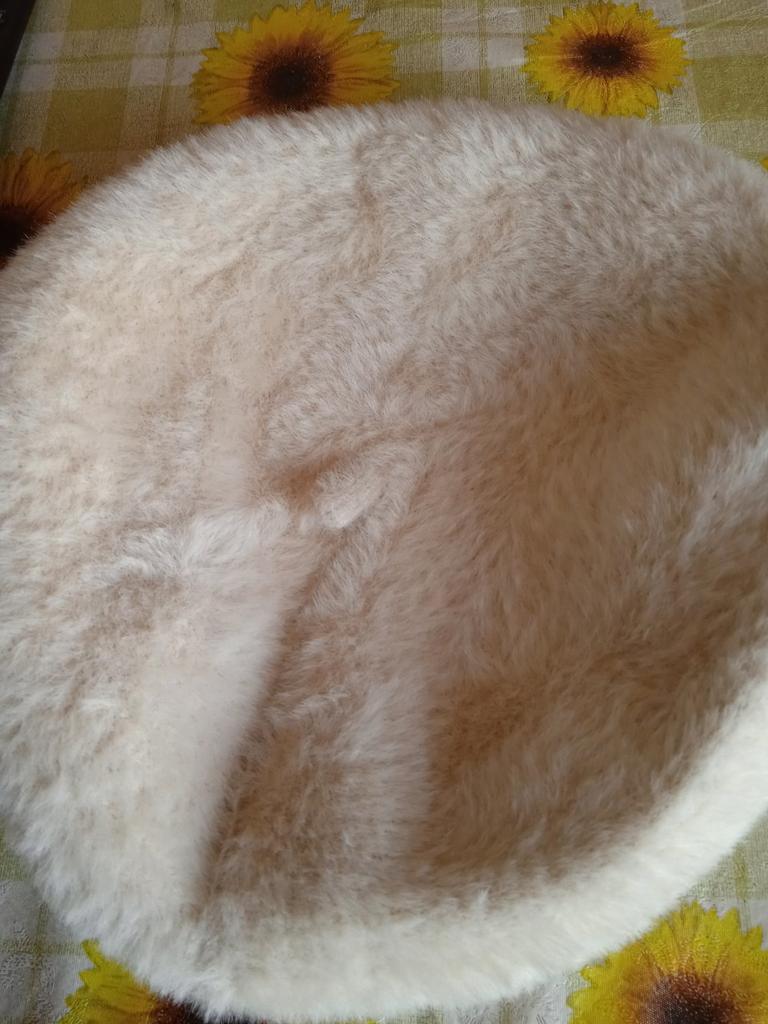 Wonderful winter beret made of eco-fur. Beige. Soft and cozy, there is a volume control. I definitely recommend!❤️
