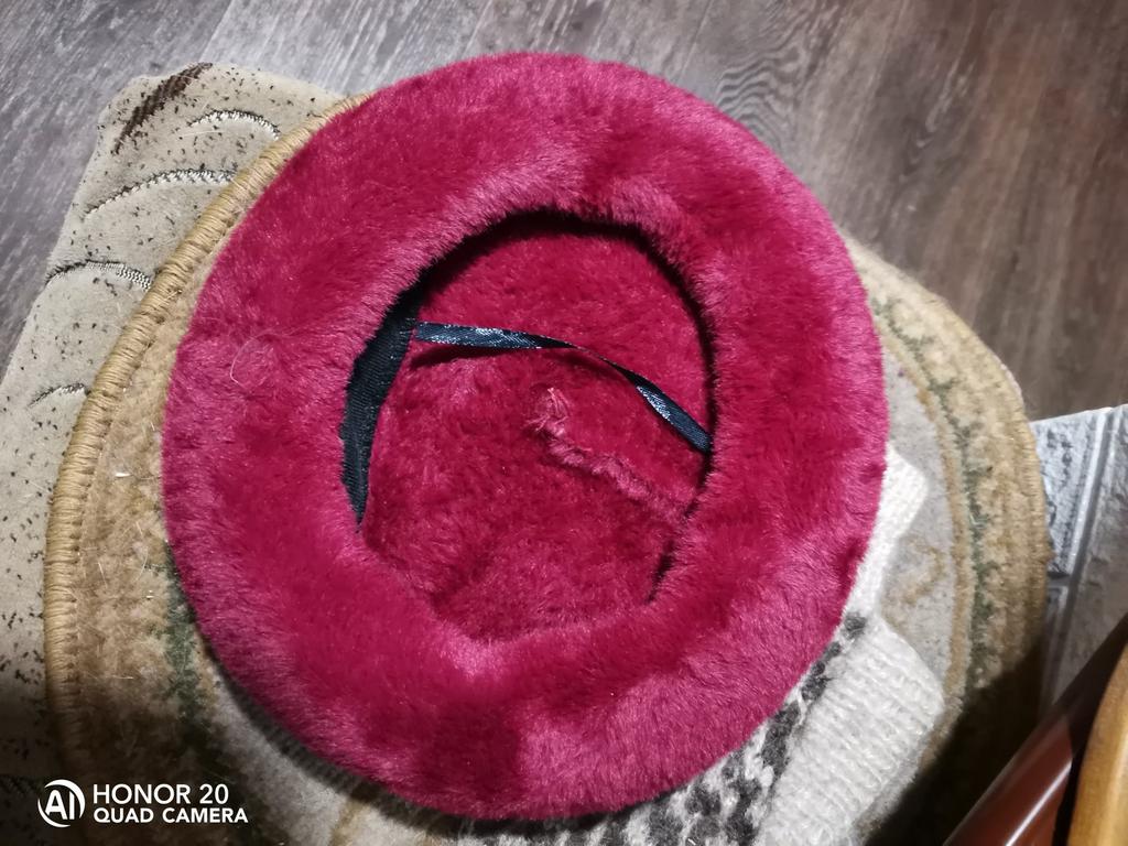 A good beret. Everything is as in the advertising photo. Thick. Black trim with strings that can be used to adjust the size, the size on the head.