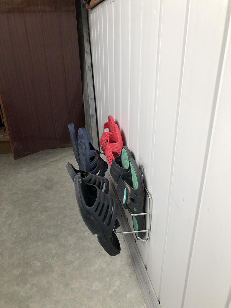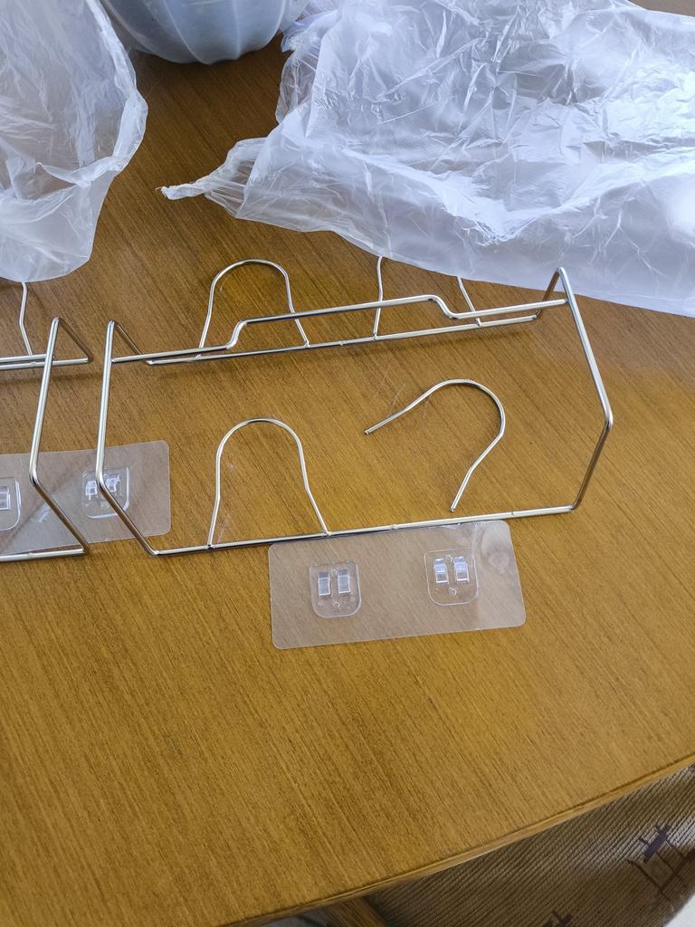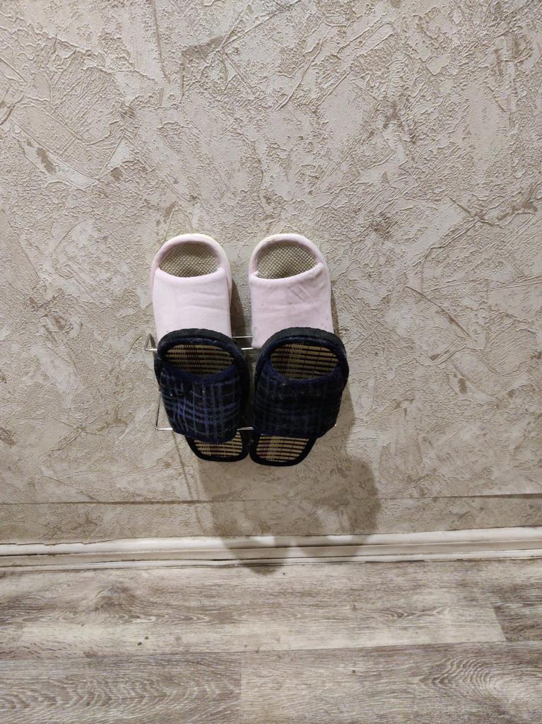 weak elements of the hooks, they peel off from the wall and have to be glued again, but in general a very good design for slippers.