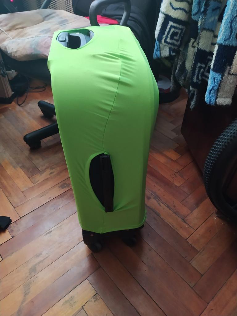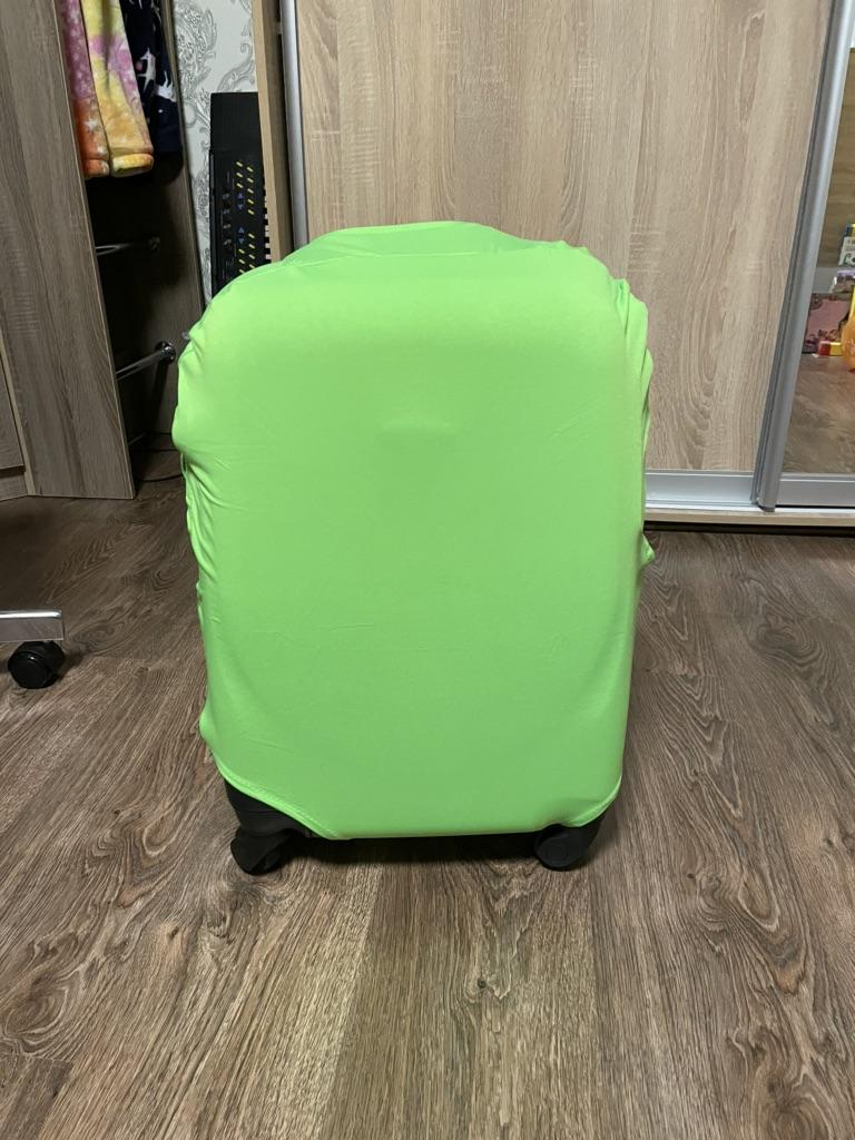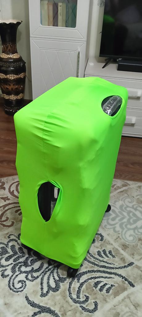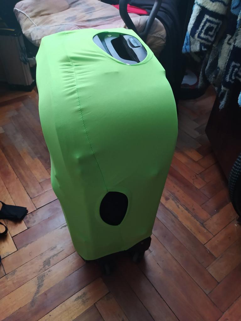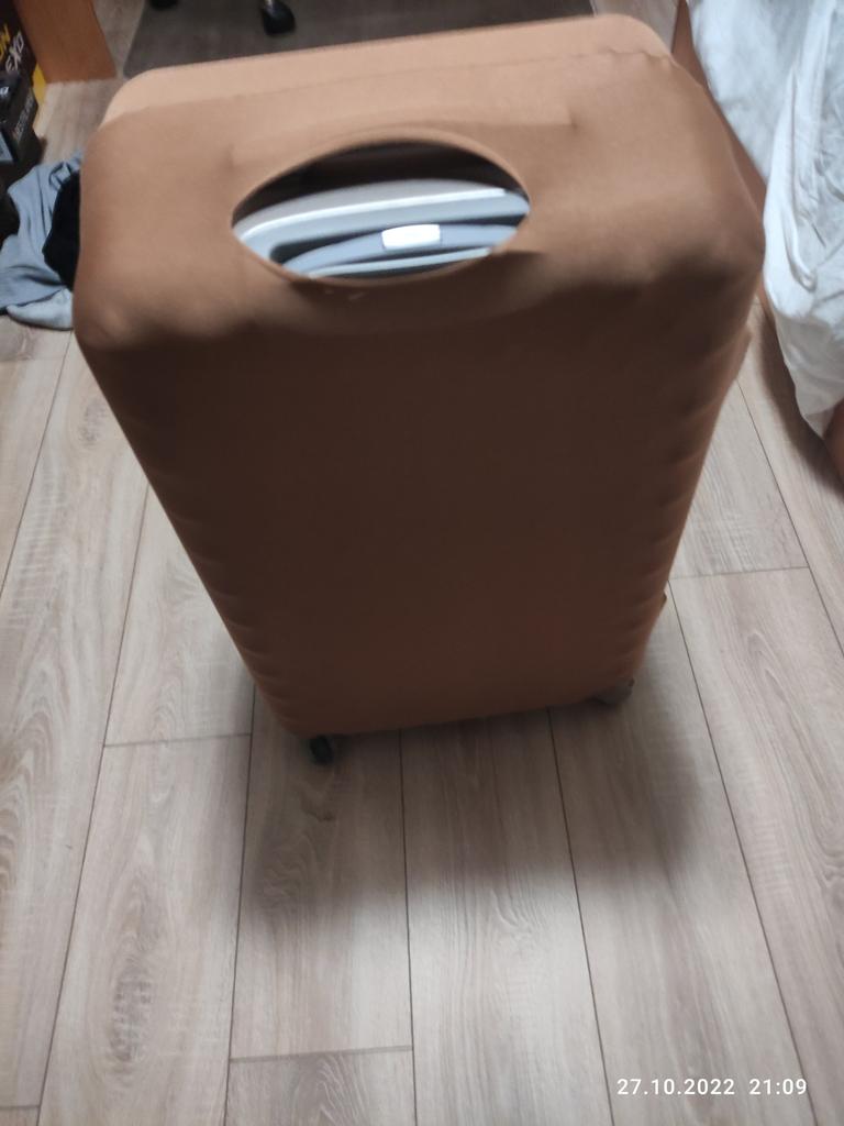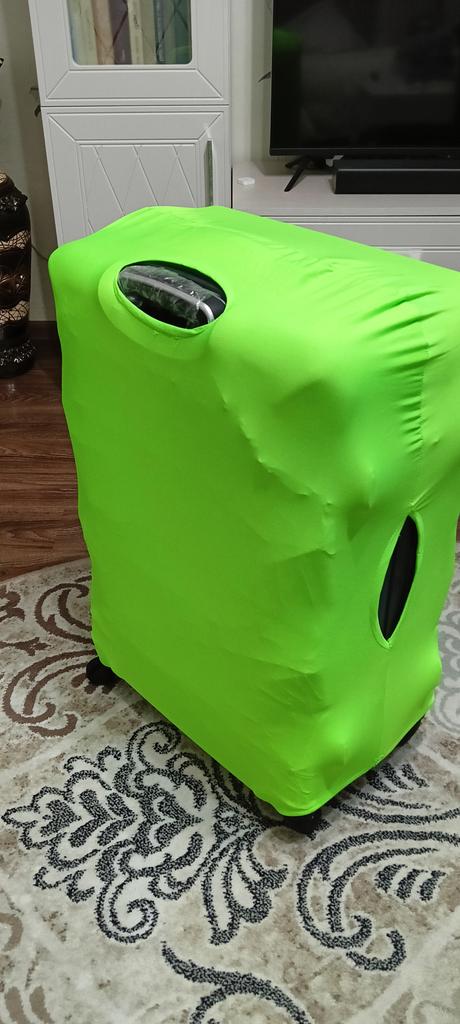 Delivered quickly, packed in a shipping plastic bag, no damage. The cover itself is thin, made of spandex, fastened with Velcro from the bottom, there is no side cut under the handle. It may be enough for 1 trip, but no more.