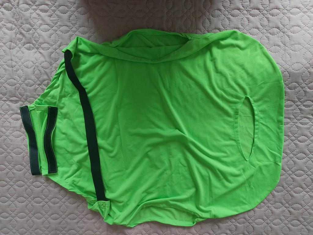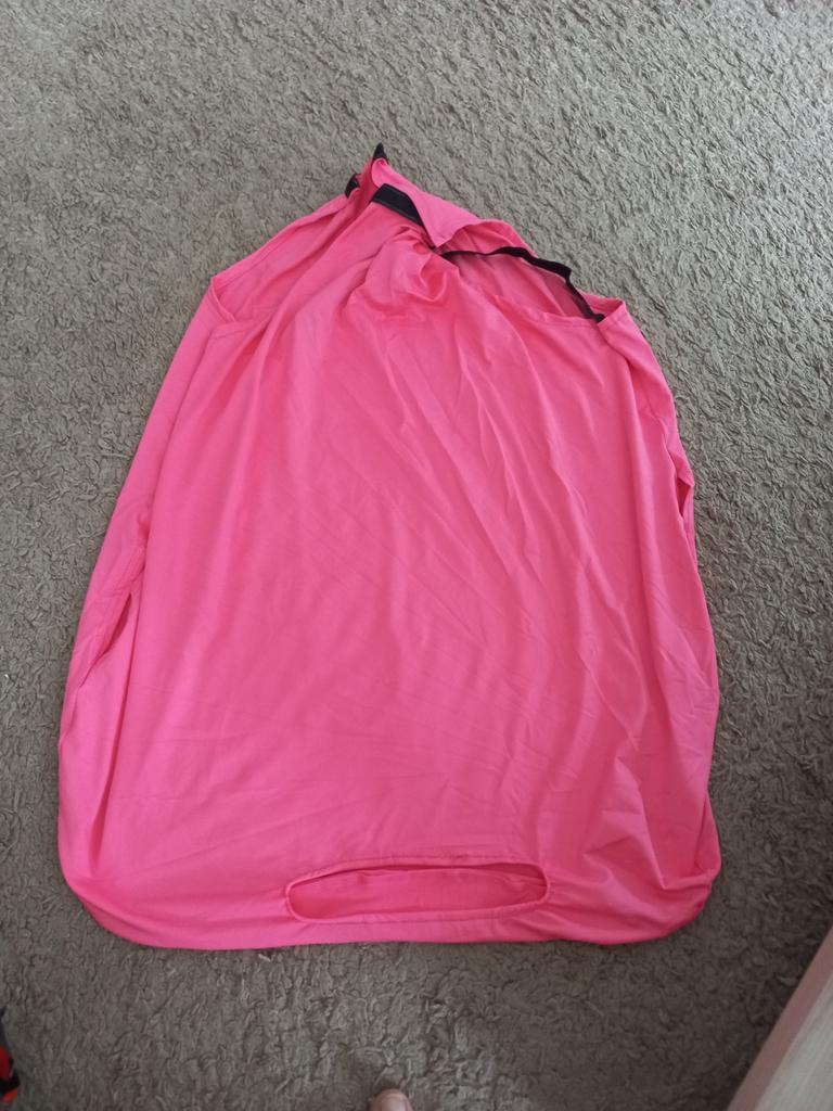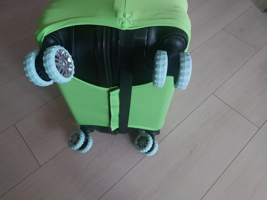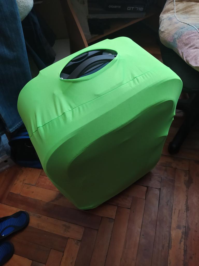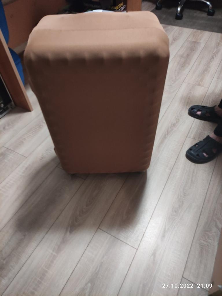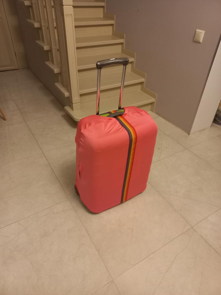 Delivered quickly, packed in a shipping plastic bag, no damage. The cover itself is thin, made of spandex, fastened with Velcro from the bottom, there is no side cut under the handle. It may be enough for 1 trip, but no more.