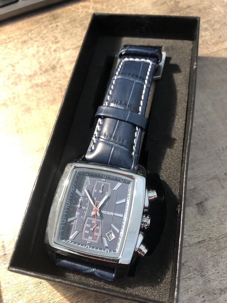 Megir Original Watch Men Top Brand Luxury Rectangle Quartz Military Watches Waterproof Luminous Leather Wristwatch Men Clock 2028