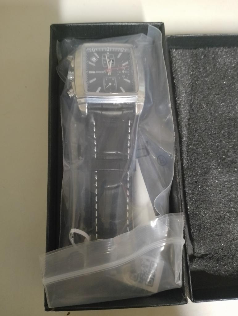 Arrive in its box surrounded by bubble wrap. Just a pity that the watch is already running but otherwise it is very beautiful and looks well made!