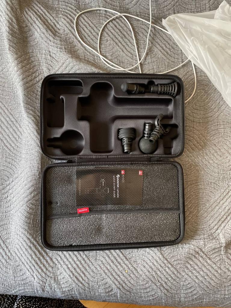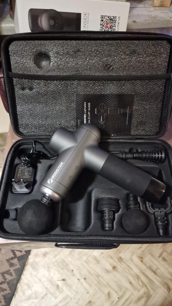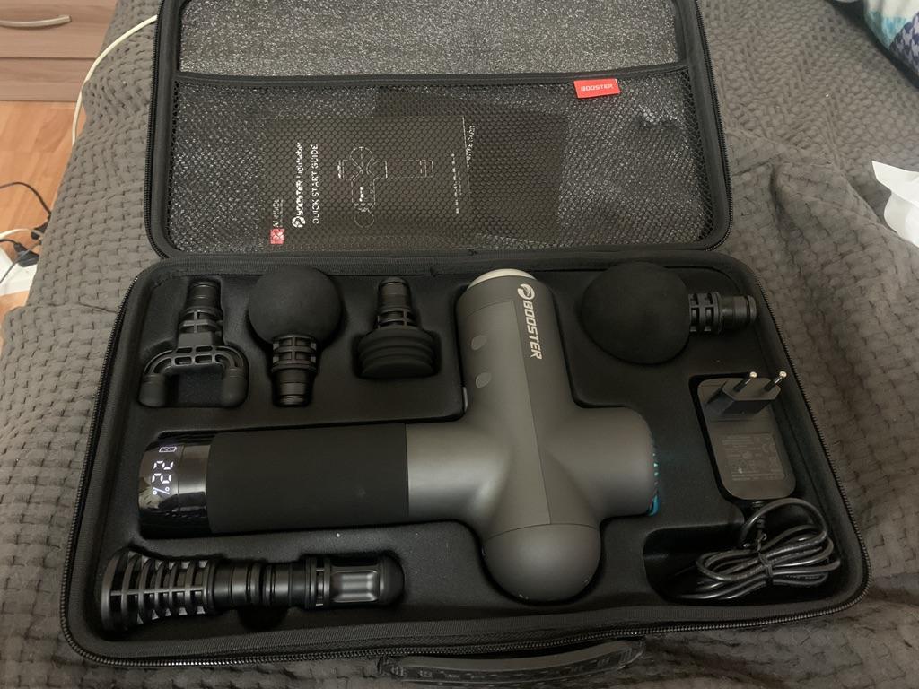The massage gun is made very qualitatively. Came in a case. The kit includes nozzles specified in the product description. Vibration strength and modes are adjustable. I am very satisfied with the purchase. Therefore, I recommend this product and the seller.
