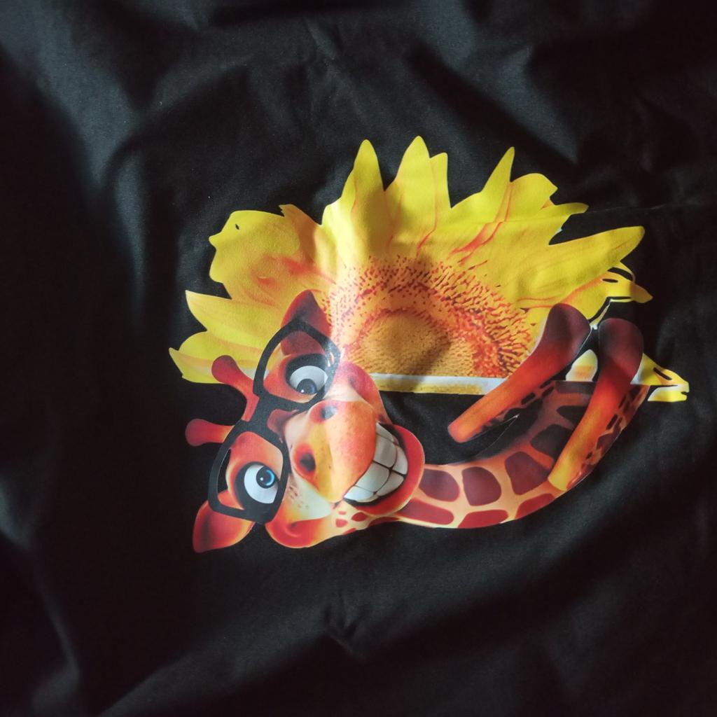 The print is bright and the t-shirt is not bad, but it runs large