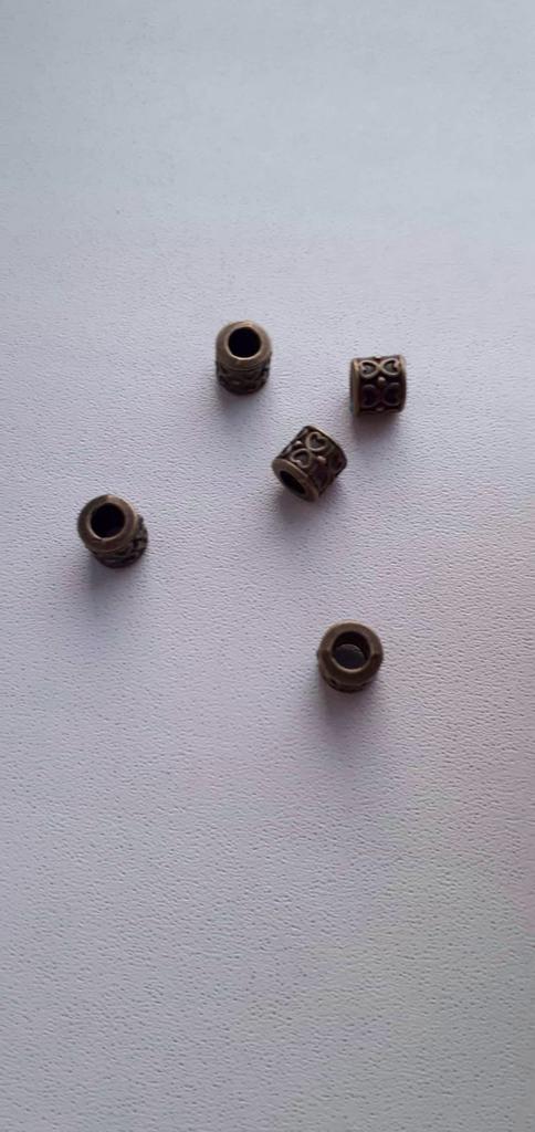 5Pcs Carved Heart Pattern Tube Spacers Beads Big Hole Beads Diy Charm Antique Bronze Color 8X8X8mm
