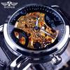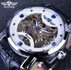 WINNER Black Skeleton Designer Blue Engraving Clock Men Leather Strap Mens Watches Top Brand Luxury Automatic Watch