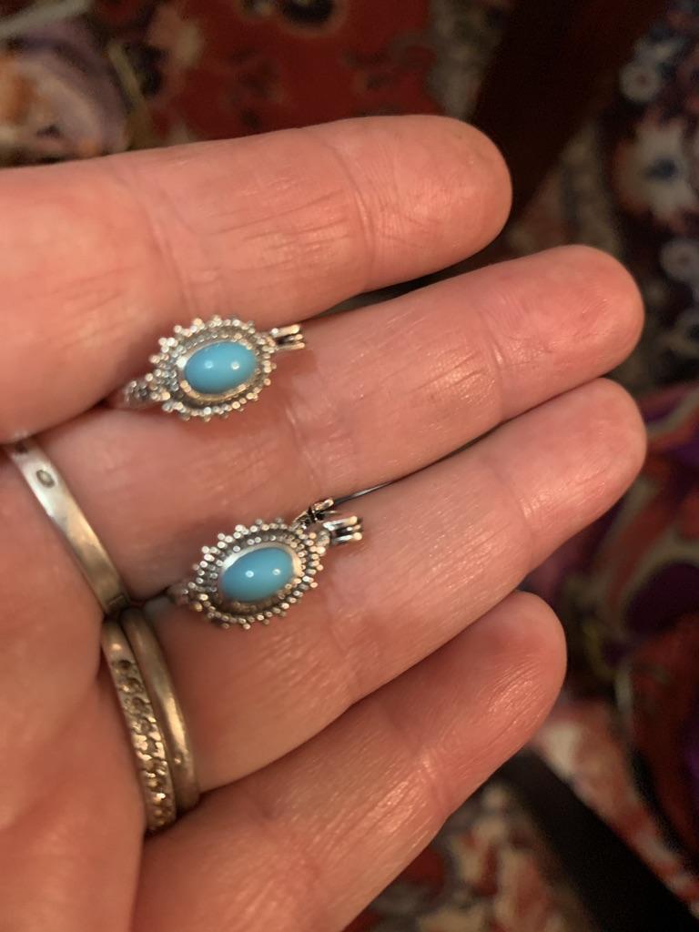 Electroplating Vintage Earrings Great Gift Small Blue Turquoise Bohemian Clip