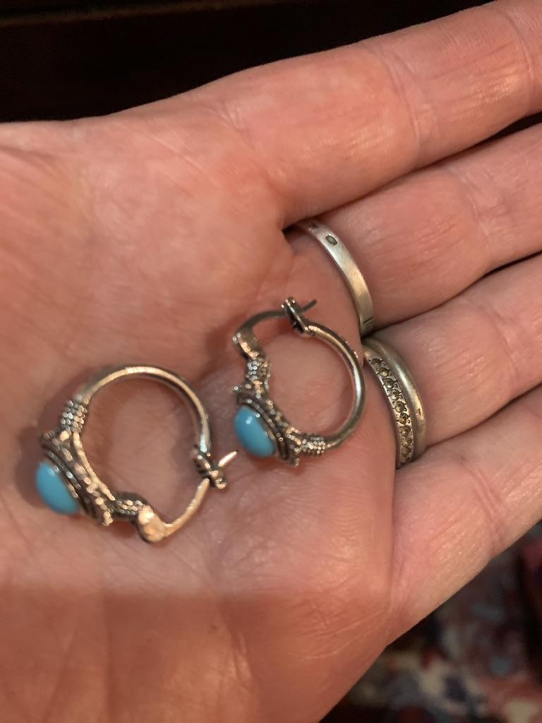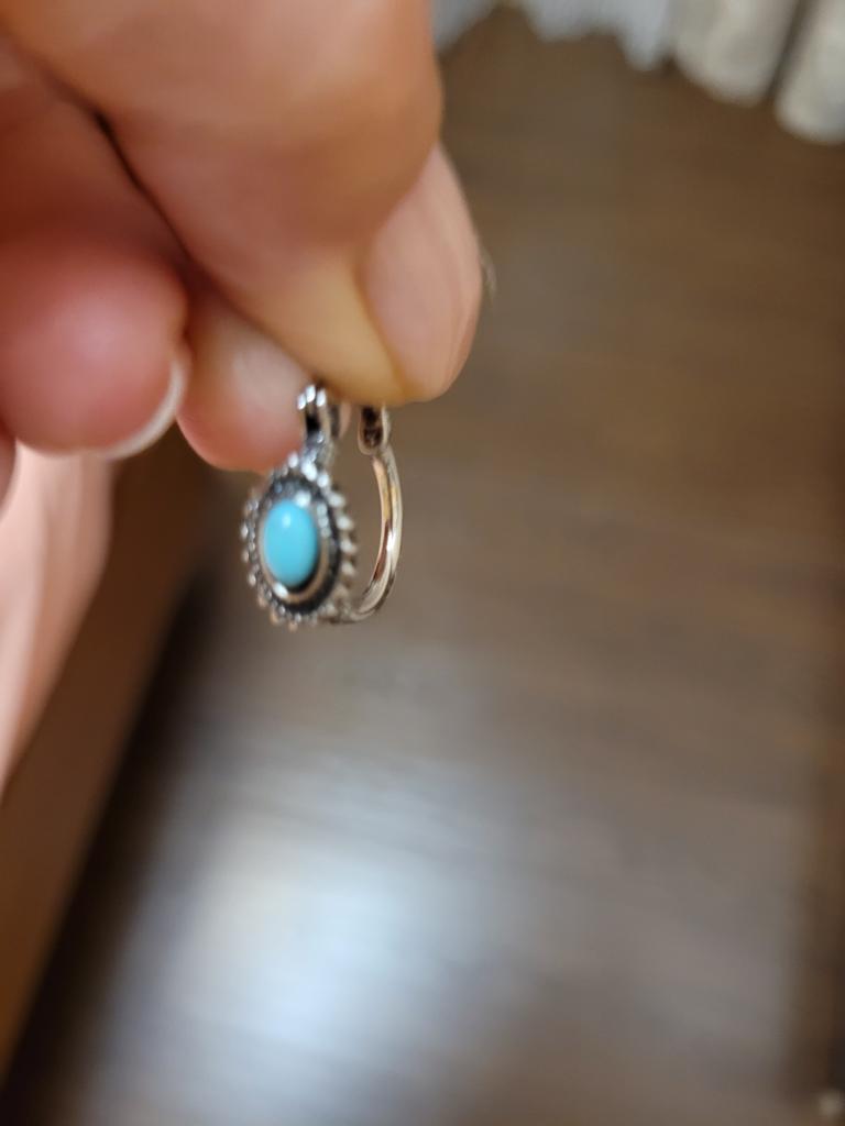 Very stylish, cute earrings are small in size, they look like silver. Comfortable and well worn. Friends are delighted.