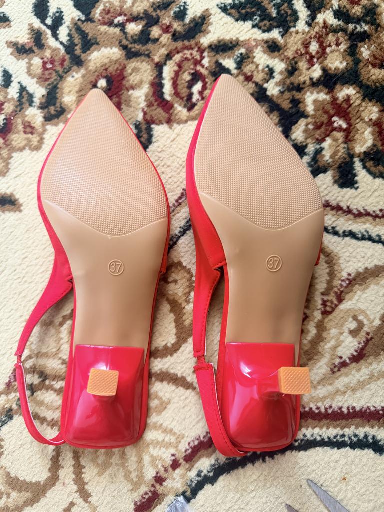 The heel is damaged, twisted, the material seems okay, the color is bright and beautiful