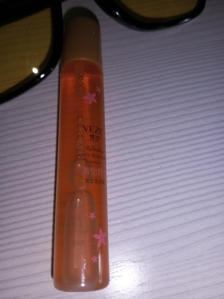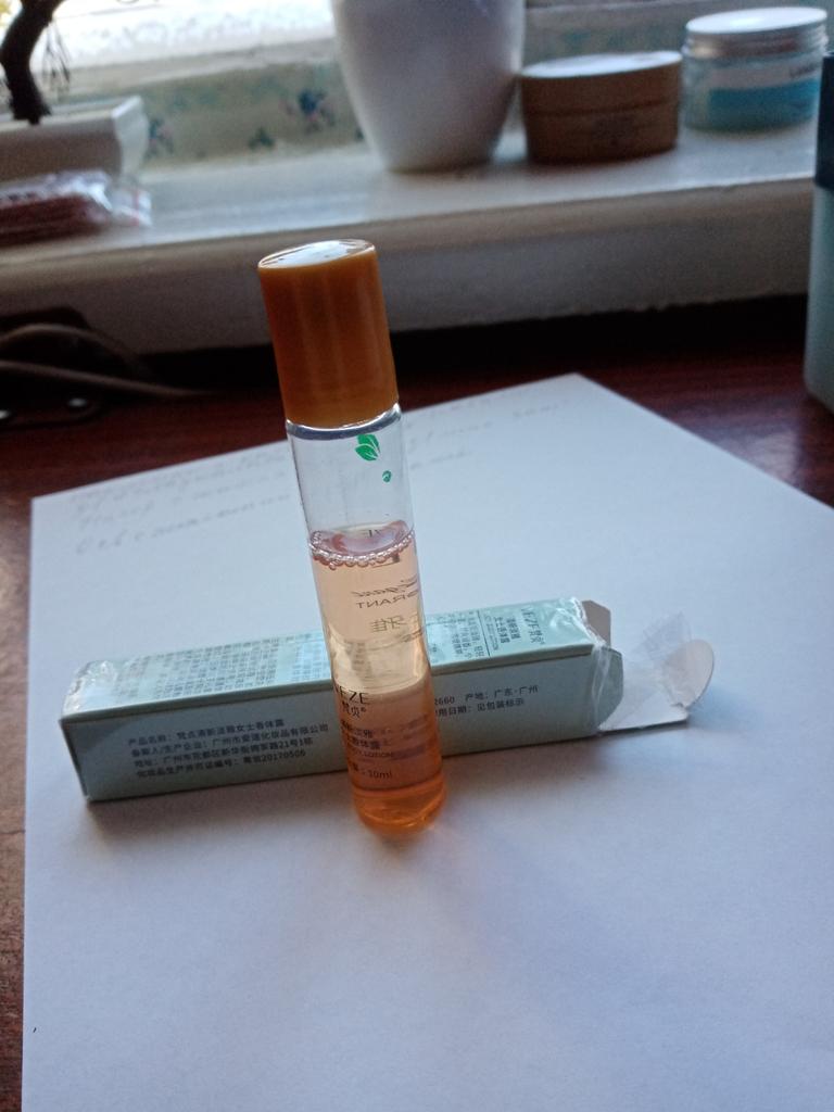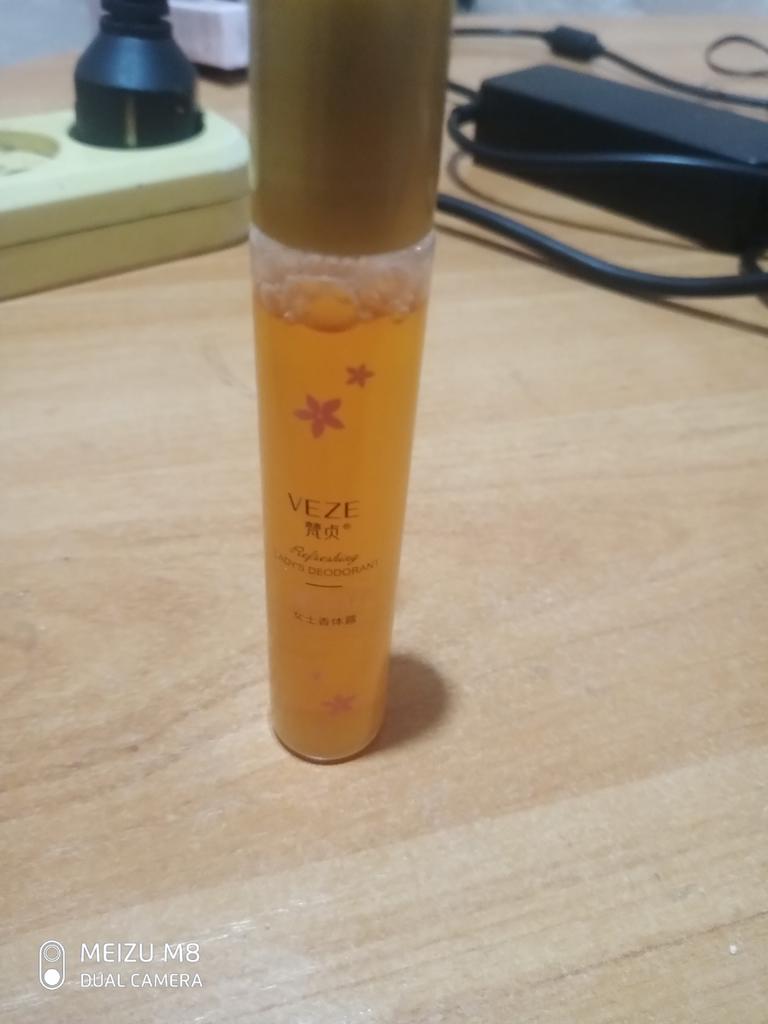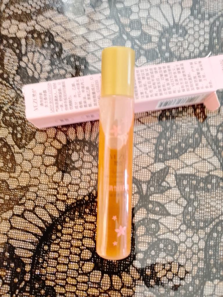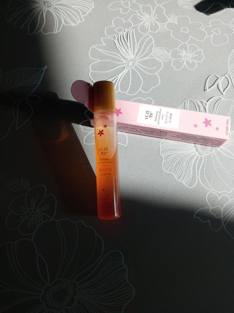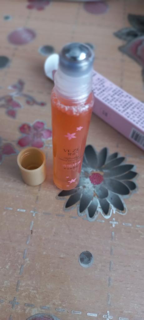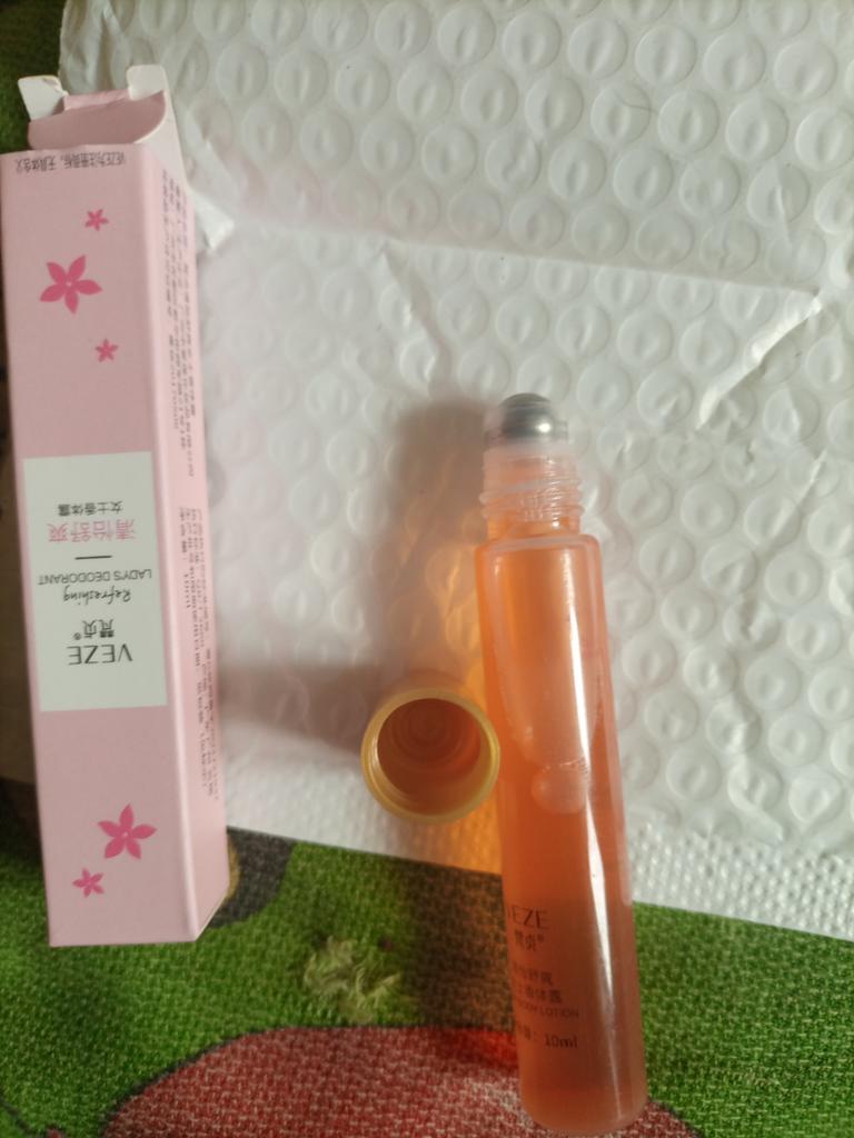 Very pleasant smell. With a roller. Convenient to carry in your cosmetic bag.