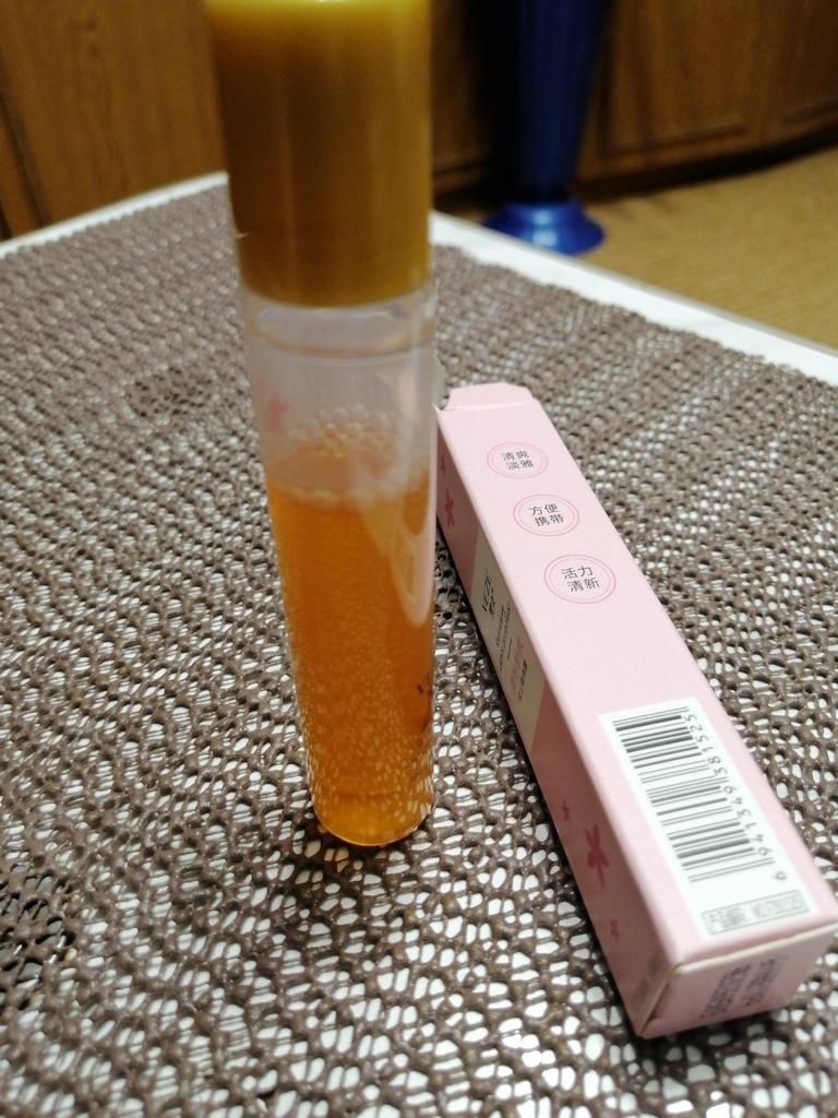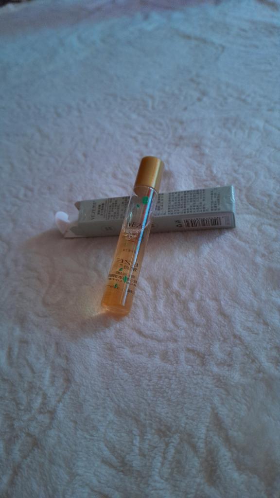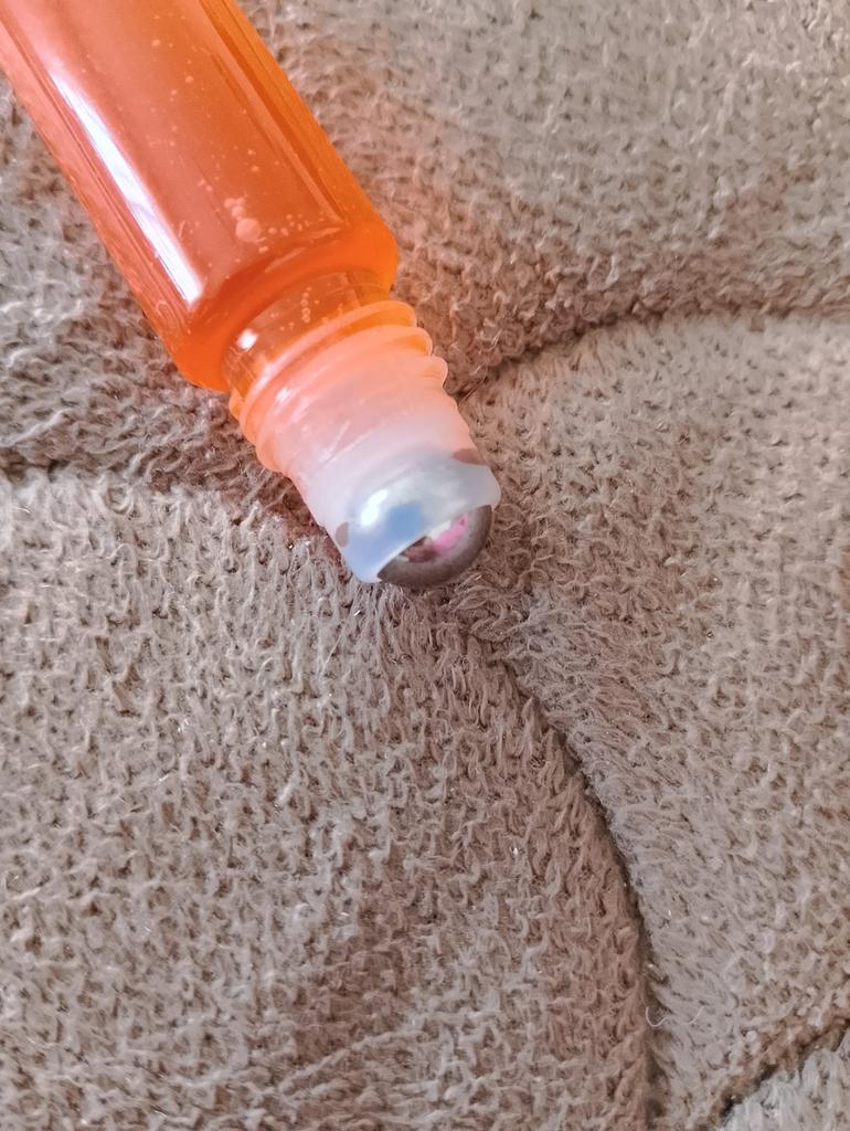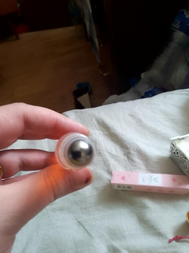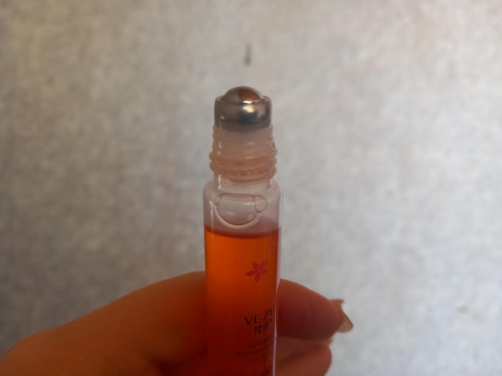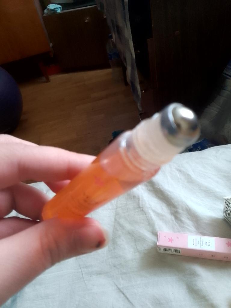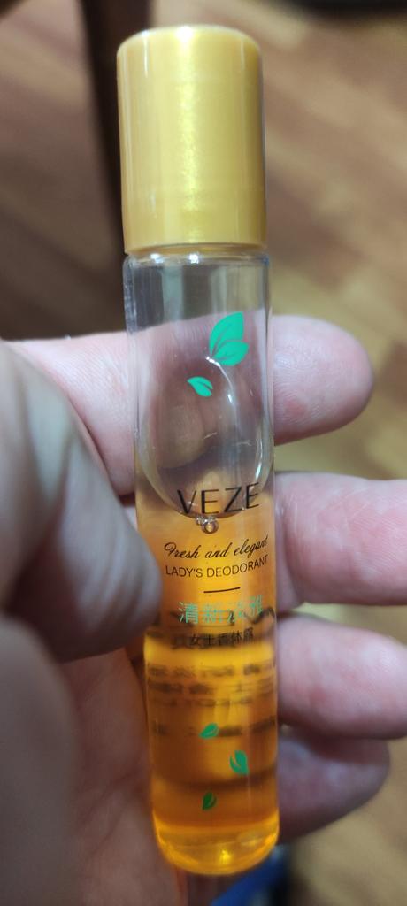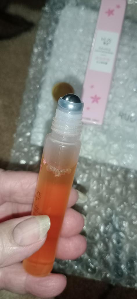 Very pleasant smell. With a roller. Convenient to carry in your cosmetic bag.