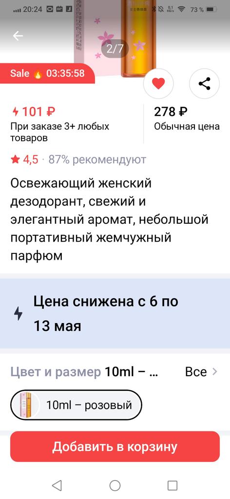 The deodorant is excellent, the smell is pleasant, compact, just right for a woman’s handbag, packed well in a bubble wrap, everything is whole, without damage