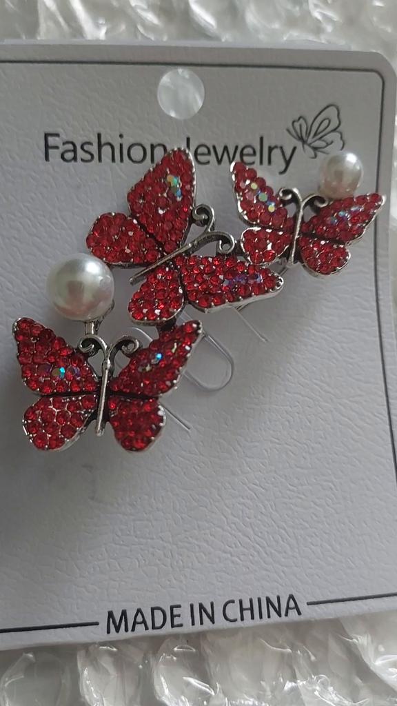 🛍️Safety pin with 3 butterflies🛍️ Rating: ⭐⭐⭐⭐⭐ 👈 This pin looks very beautiful, it has 3 beautiful red butterflies on it and you can put it on the clothes and it looks stunning! • There are many small red diamonds on the pin and it is very beautiful and attracts the eye. It is also very suitable as a gift🎁 • The pin is high quality and made of copper. • The pin arrived protected in a standard shipping bag. • The product reached me in about 61 days. 👈 Many thanks to BLUCOME for sending me this amazing necklace! Highly recommended to buy🛍️