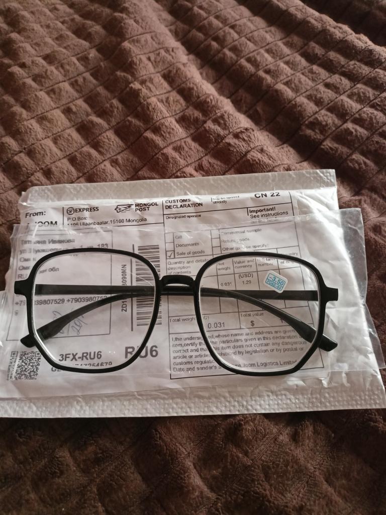 Great glasses. Everything is as in the description. Goals have arrived. I have already ordered twice. The first were with a transparent frame, these - with a black one. It looks great on a round and wide face.