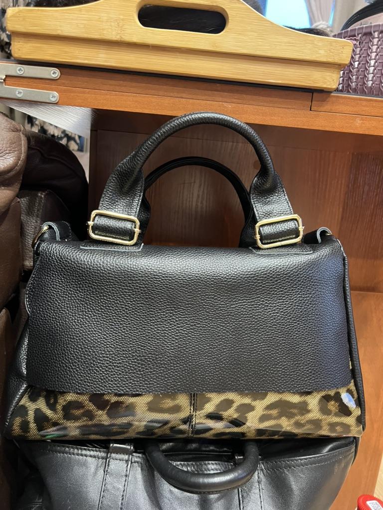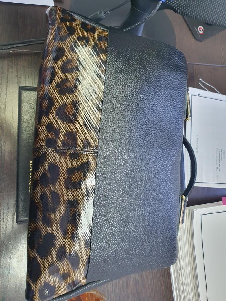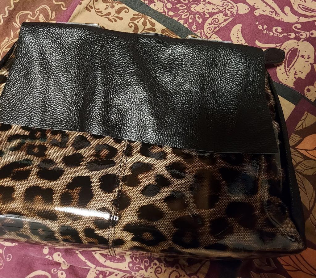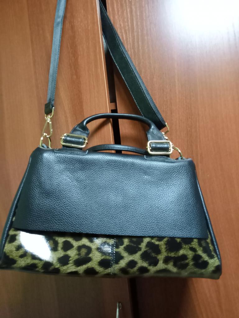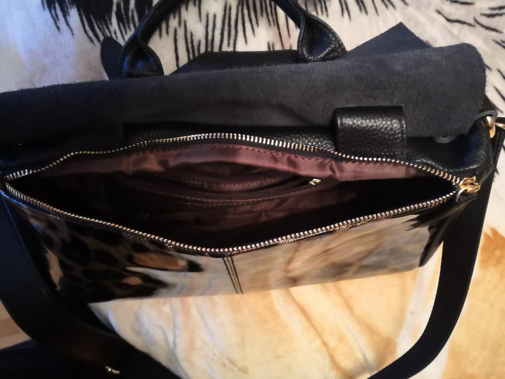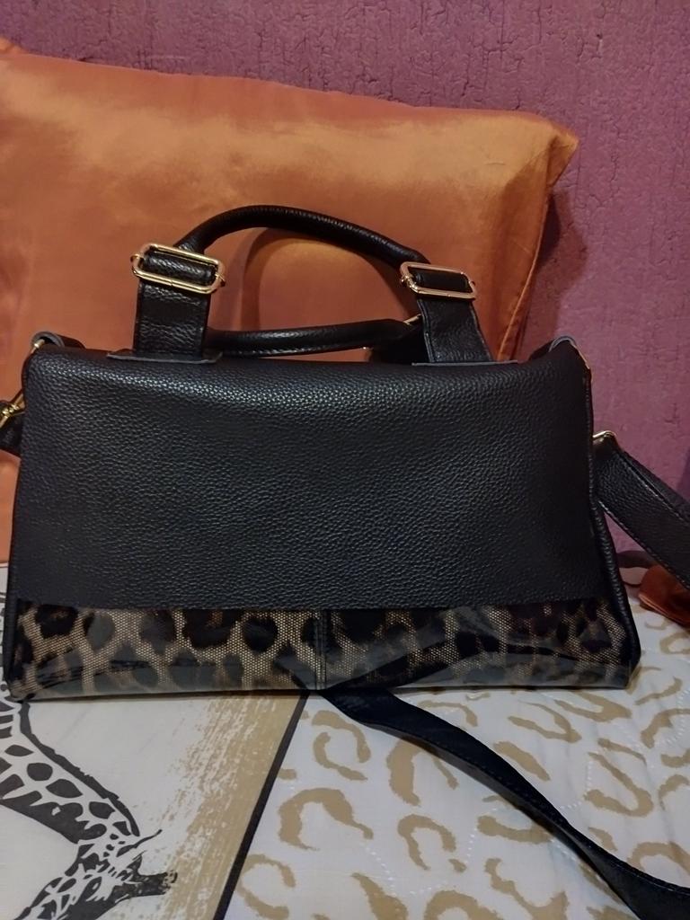 I didn't like the bag very much, the leopard spots are not clear, it's heavy without anything although it's still leather. The bag looks better in the photo, I am disappointed with this purchase.
