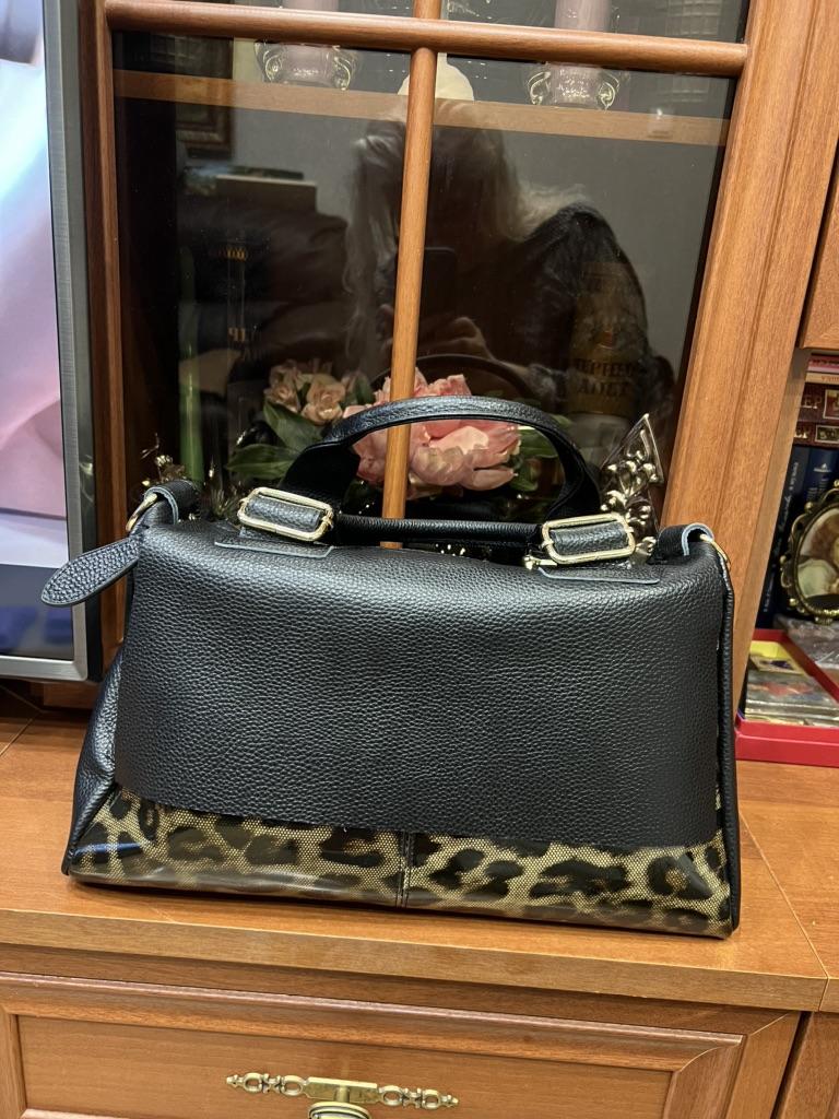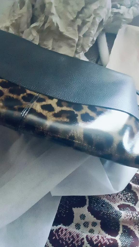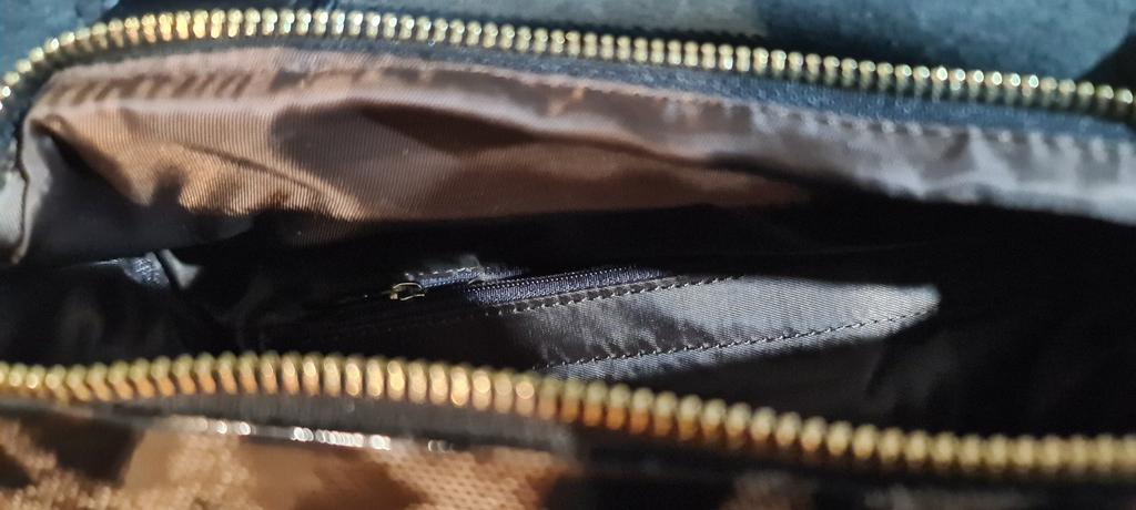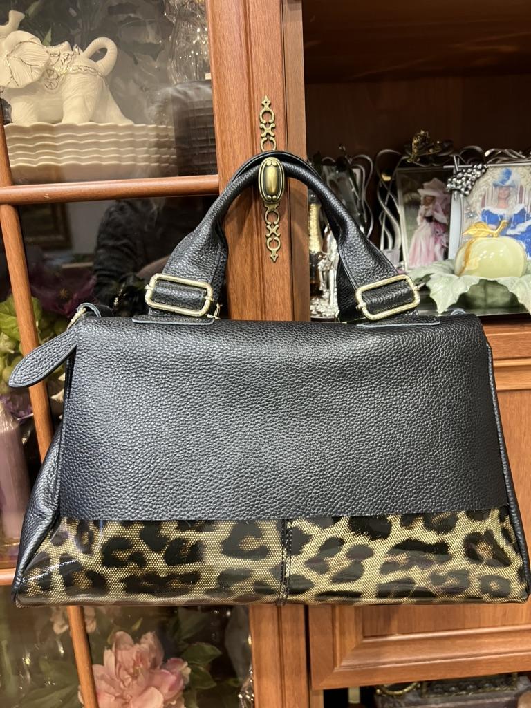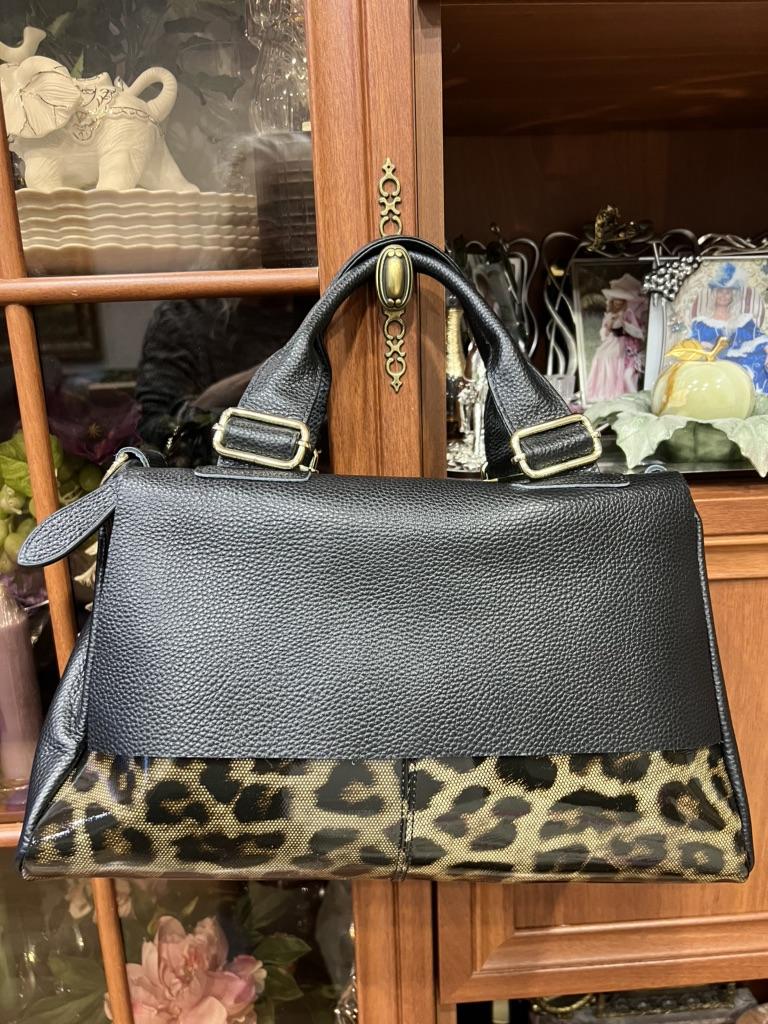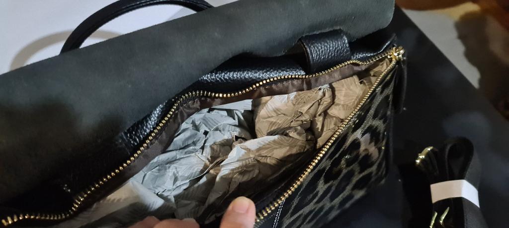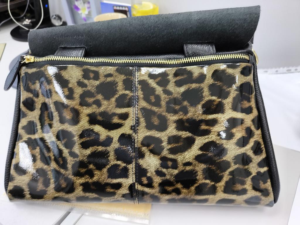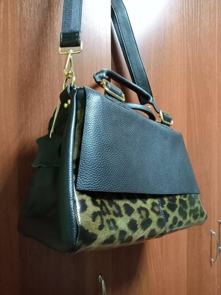 I didn't like the bag very much, the leopard spots are not clear, it's heavy without anything although it's still leather. The bag looks better in the photo, I am disappointed with this purchase.