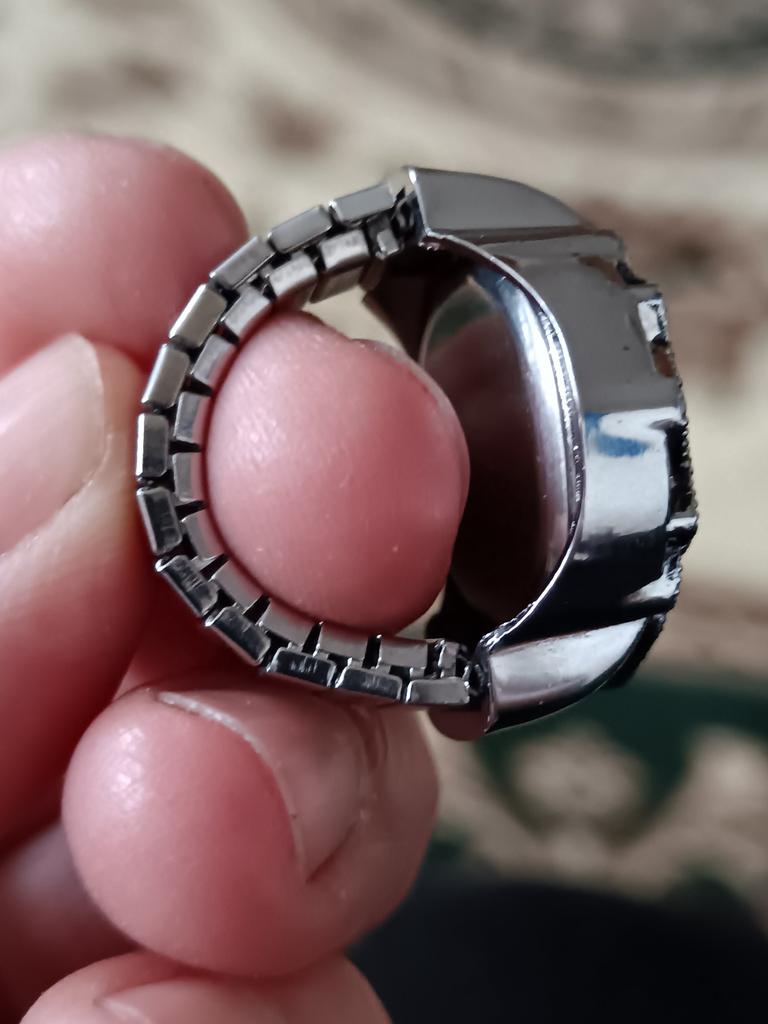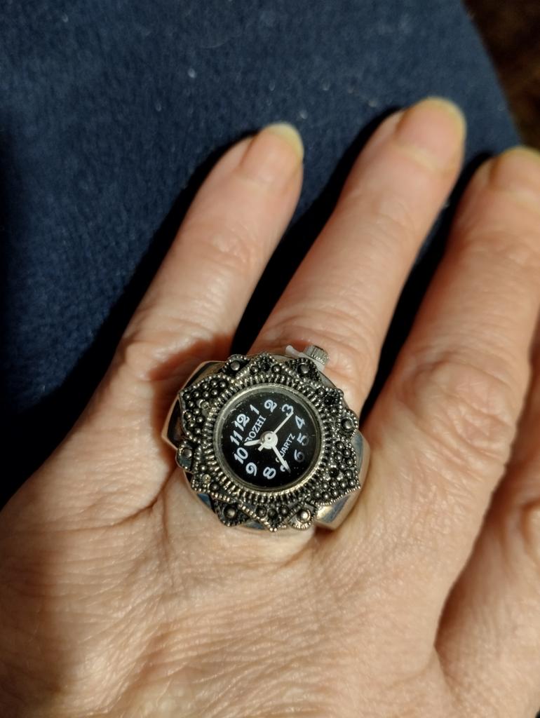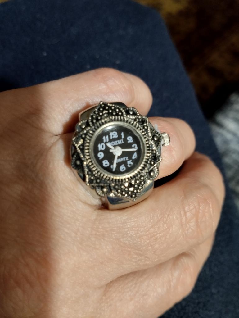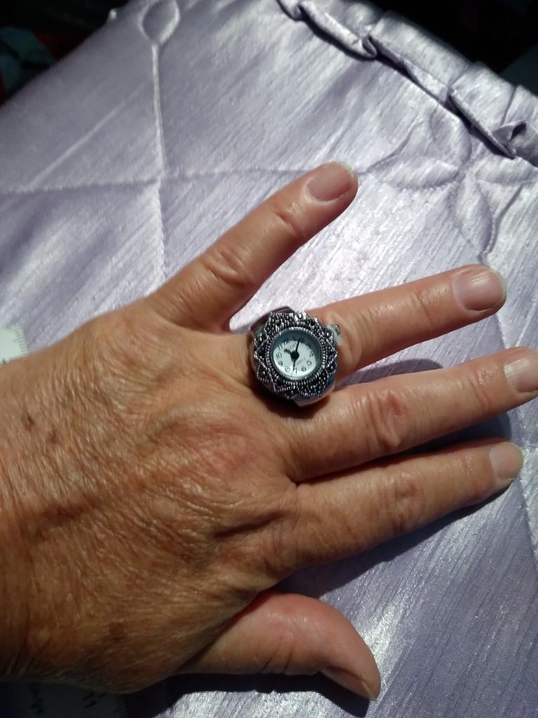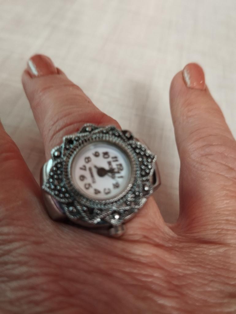 The watch is pretty, though, A bit small for those with vision problems, but visible. The size is adjustable for the finger, the ring is a bit stretchable, 18.5 is good