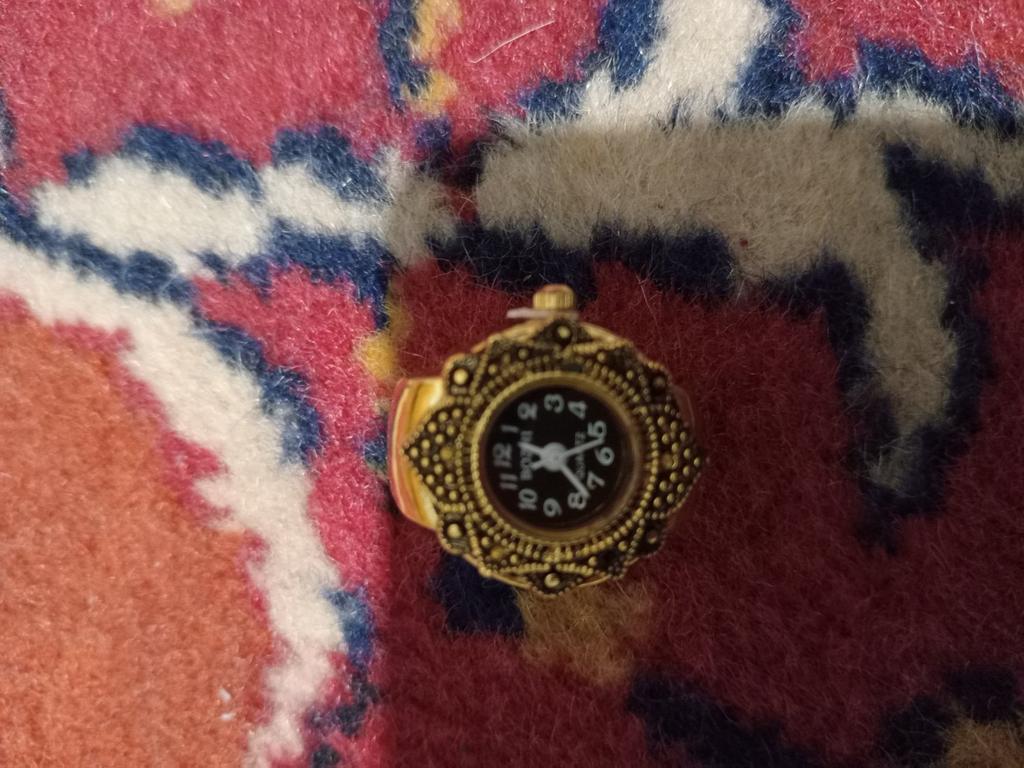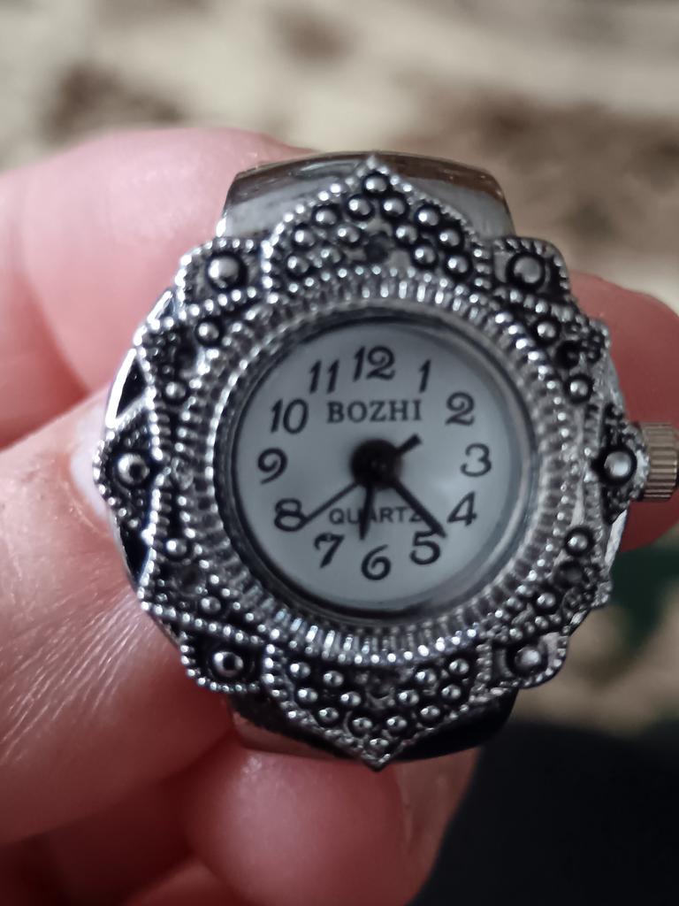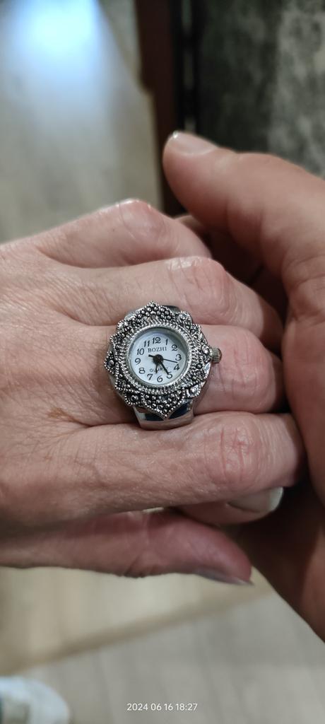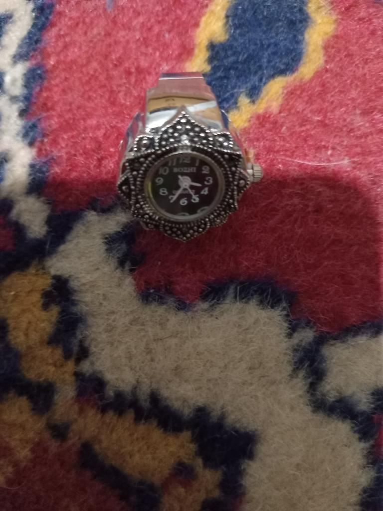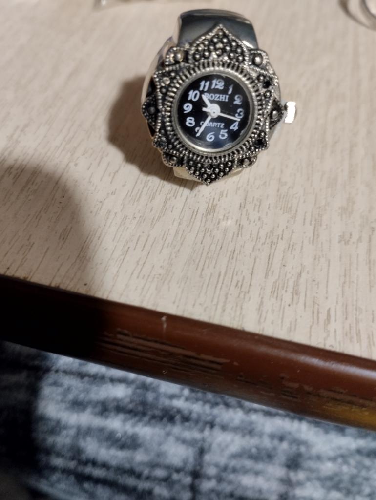 The watch is pretty, though, A bit small for those with vision problems, but visible. The size is adjustable for the finger, the ring is a bit stretchable, 18.5 is good