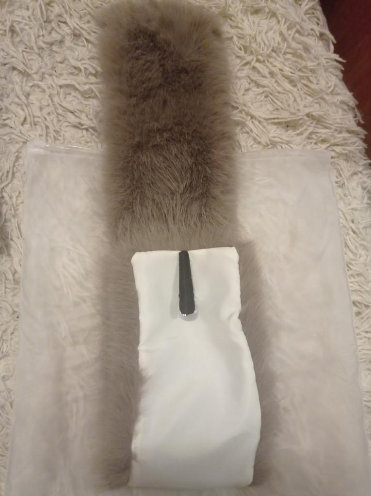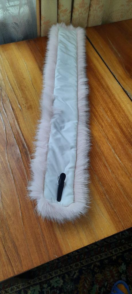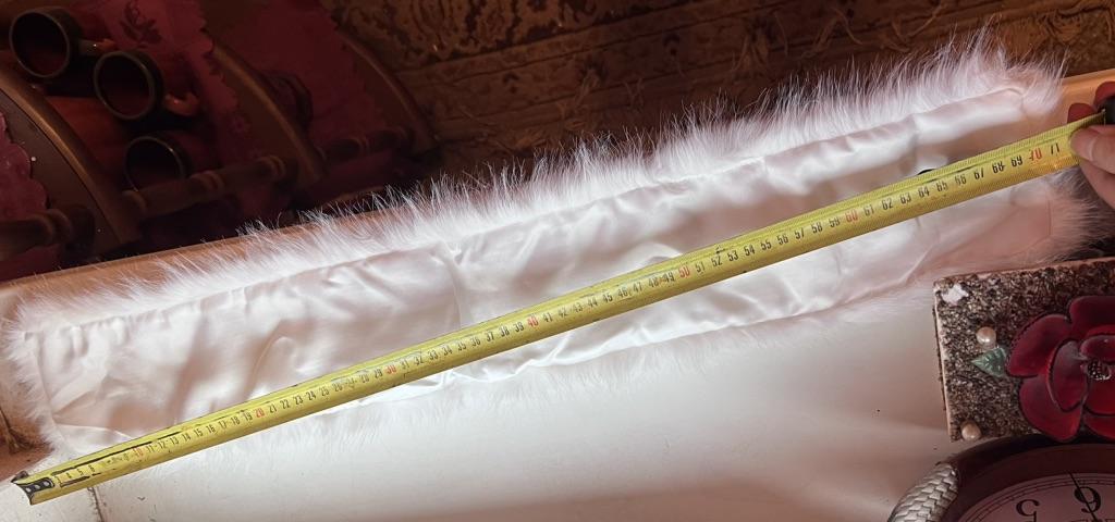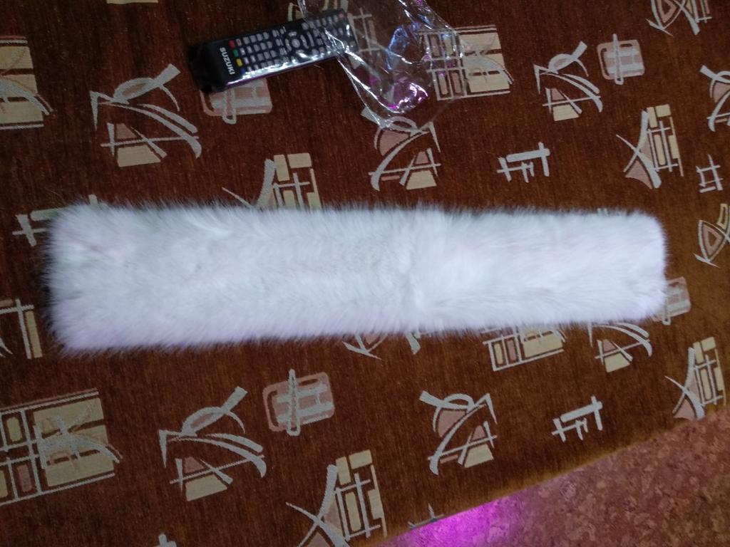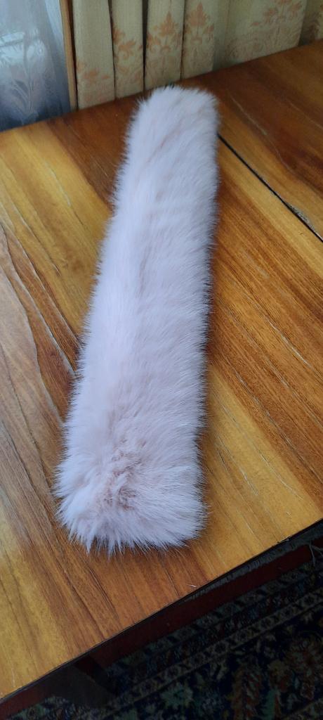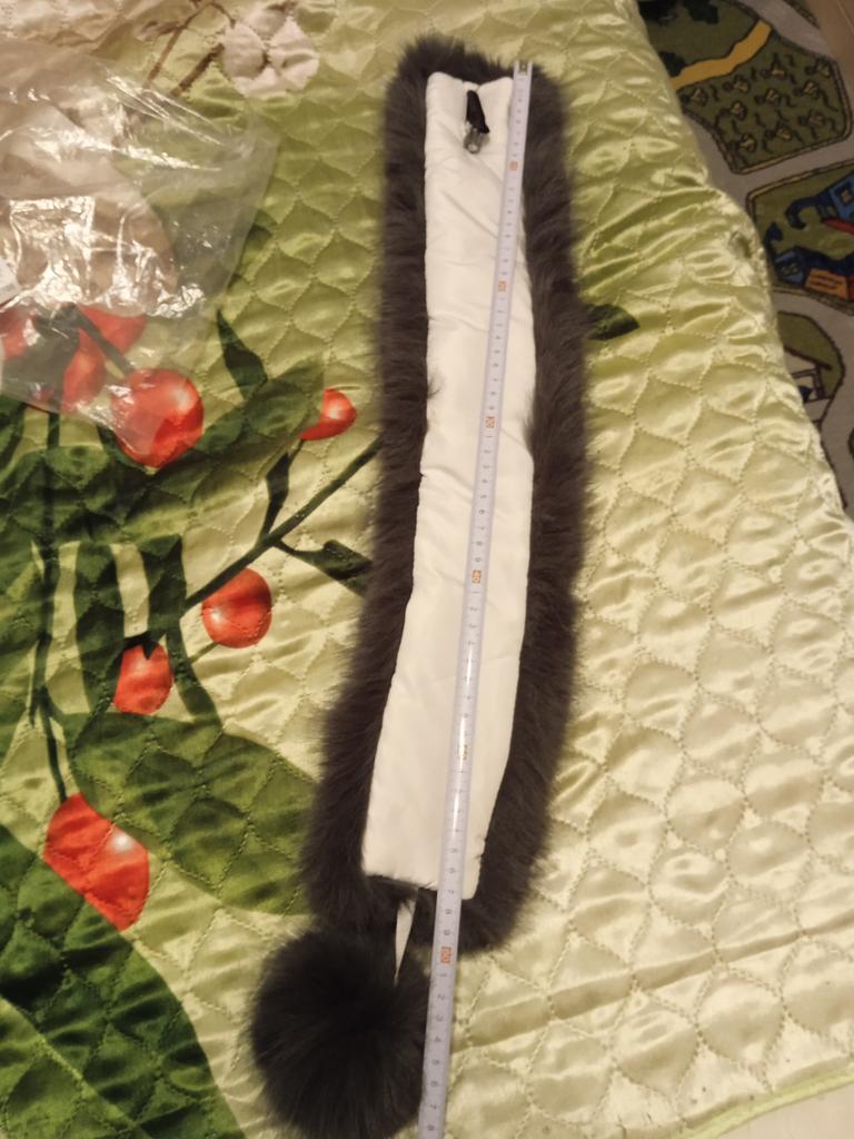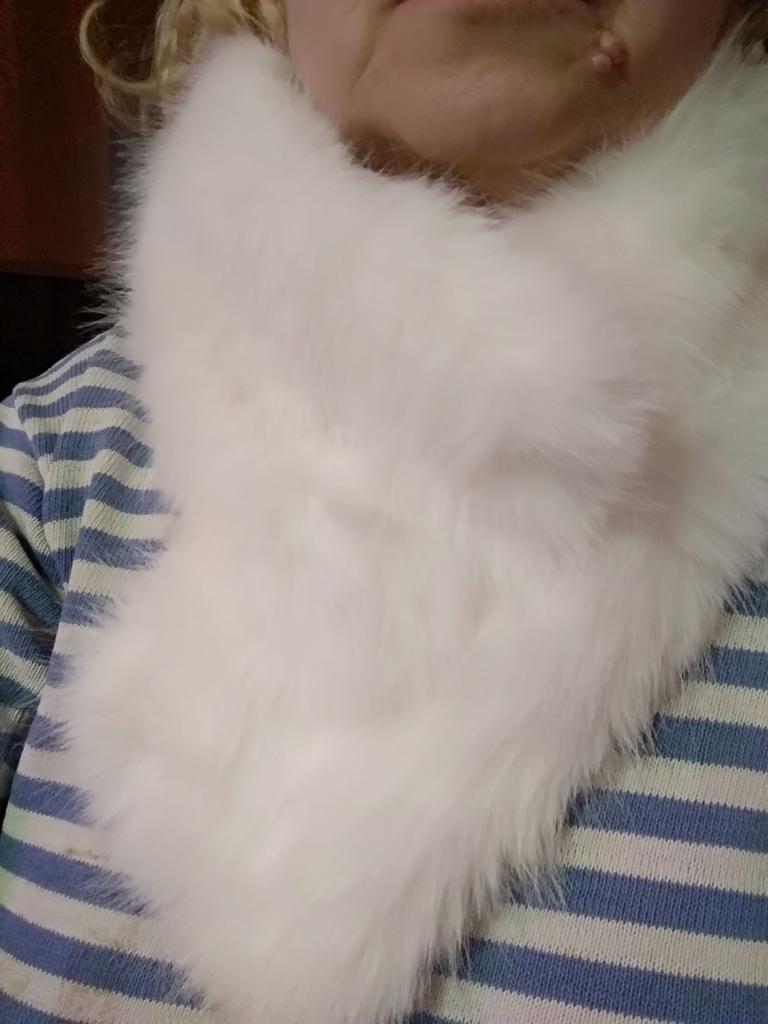 I didn't really like the scarf. A year ago I ordered a black one, it had a twill lining and was a bit wider. I wear it with pleasure. The white one has a white plush lining and is narrower, and the fur isn't very good. Well, maybe it will fluff up.