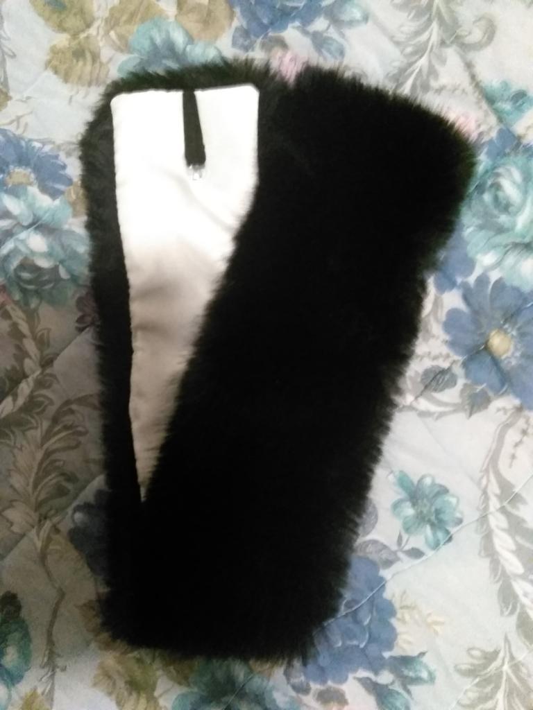 Nice fur collar scarf. The quality of the fur is excellent, similar to natural. The ends are held together with a clothespin. Can be worn both on top of clothes and under the collar. Everything suited me. Thanks everyone.