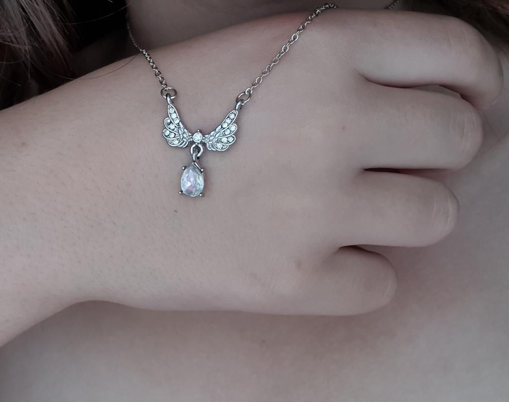 Beautiful necklace with wings and a heart with a small stone. Looks original!