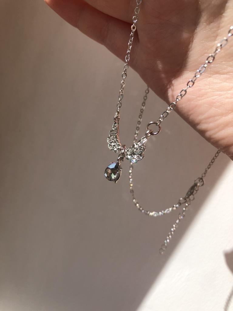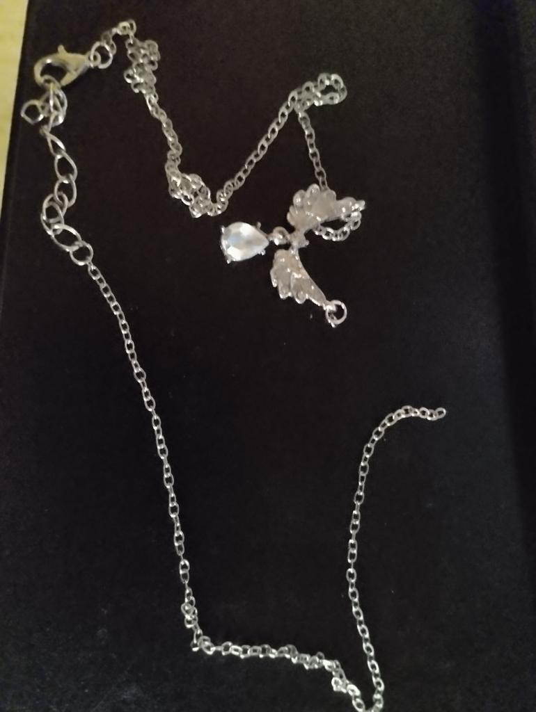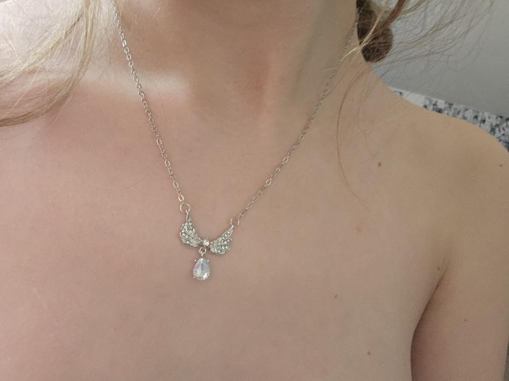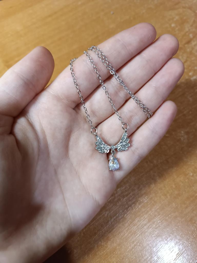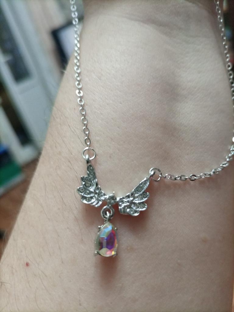 Delicate necklace. The chain is thin. The stone is small, but iridescent, like mother-of-pearl, the wings are graceful. Overall, it looks good.ππ€ποΈβπ¨οΈ