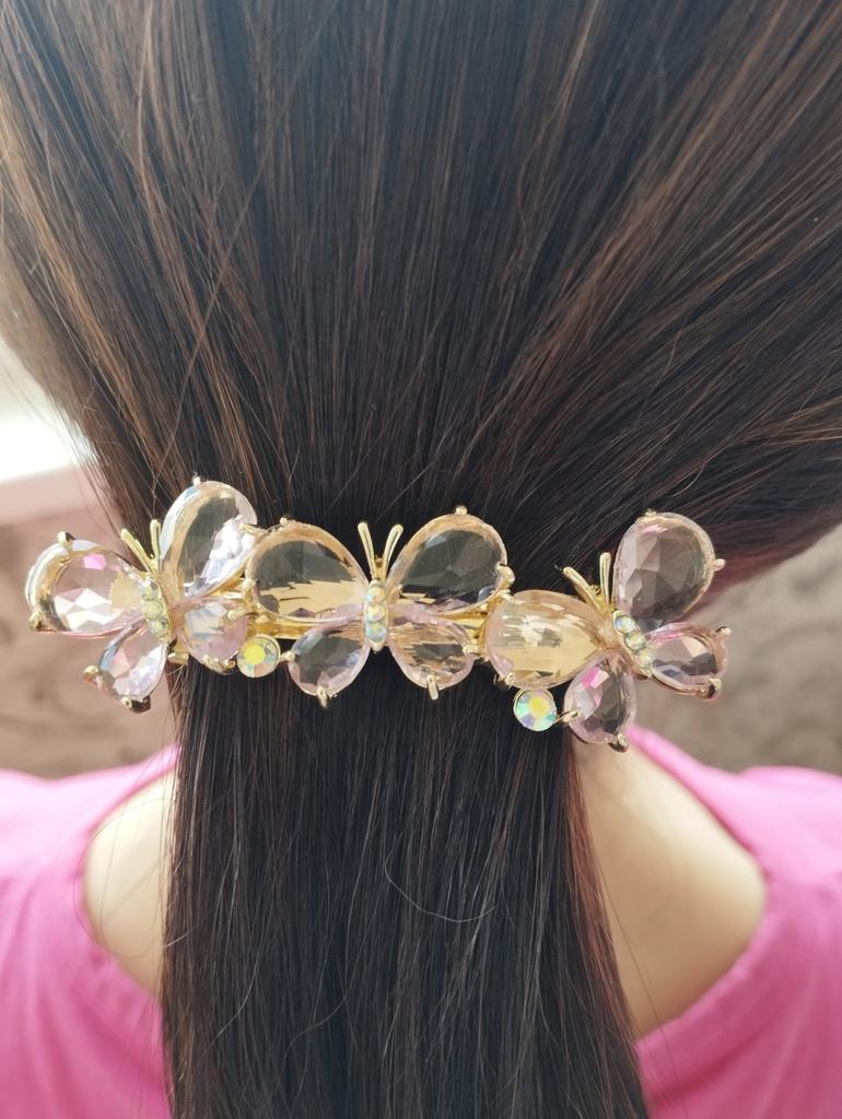 Fashion Retro Crystal Rhinestone Butterfly Hair Clip Large Top Clip Flower Spring Clip Cute Women's Duckbill Clip Headdress Hairpin