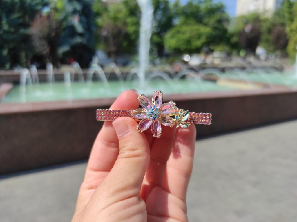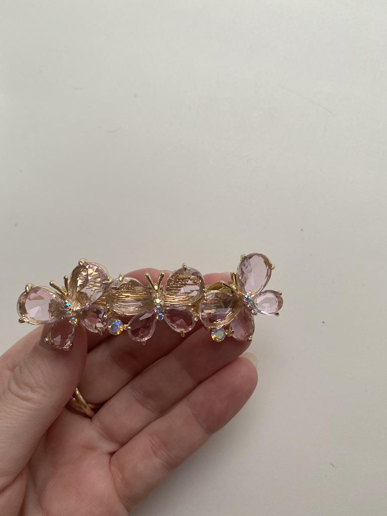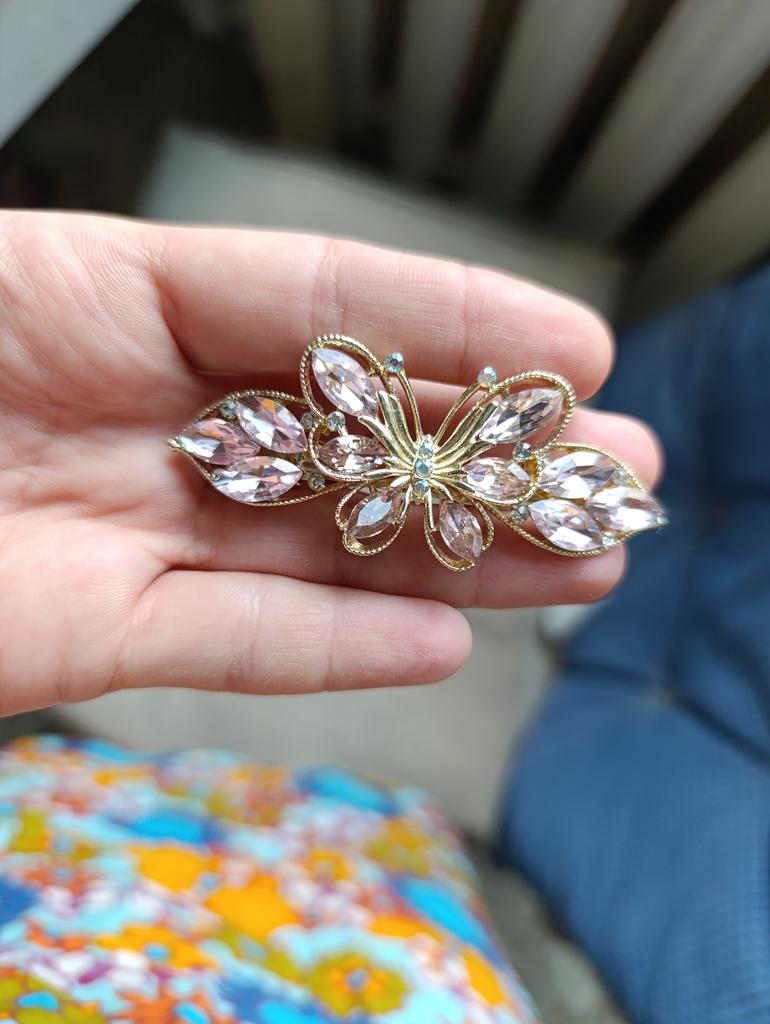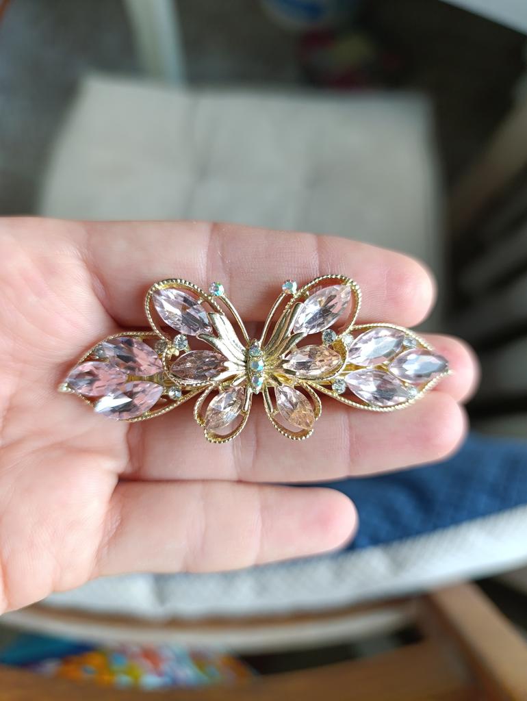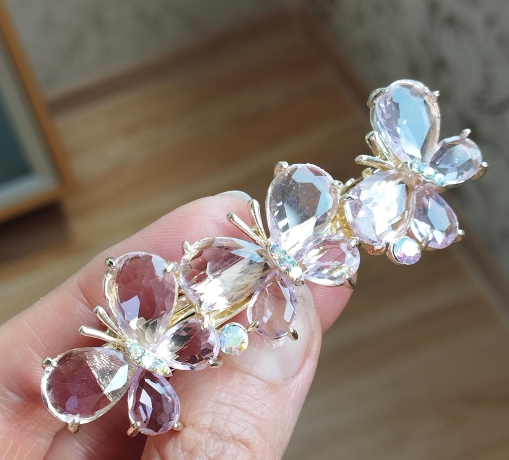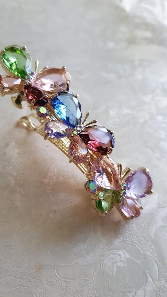 Ordered for the girl butterflies with multicolored wings. Everything is exactly as in the picture, doesn't look like plastic, delicate color, transparent like crystal. The metal part is golden, but doesn't cheapen the look, everything is harmonious. While I'm assembling the gift, I'll admire it.