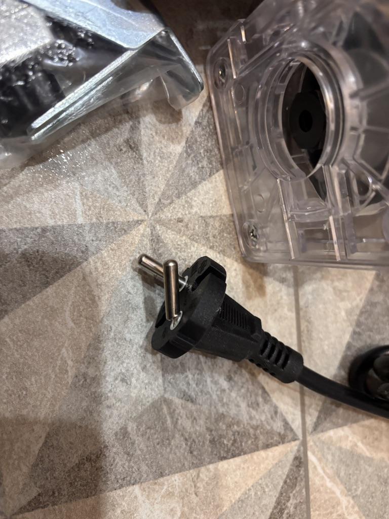 The fork is broken, one tine is broken off. The fracture shows that it is of very poor quality, the metal is foil. Cannot be used, cord needs to be replaced