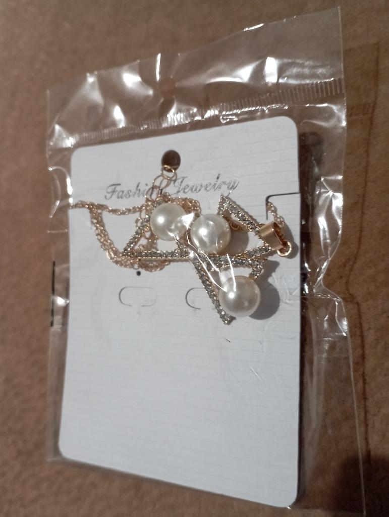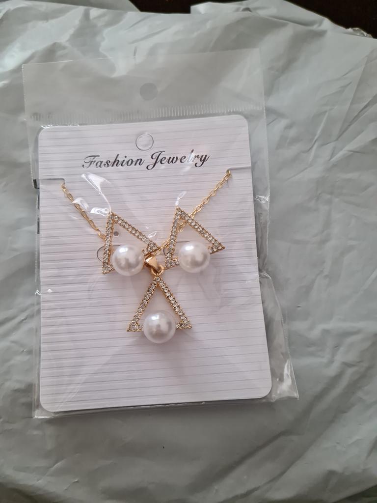 Geometric Triangle Earrings Necklace Fashion Luxury Franc Inlaid Pearl Earrings Girl Student Simple Necklace Versatile Accessories Earrings