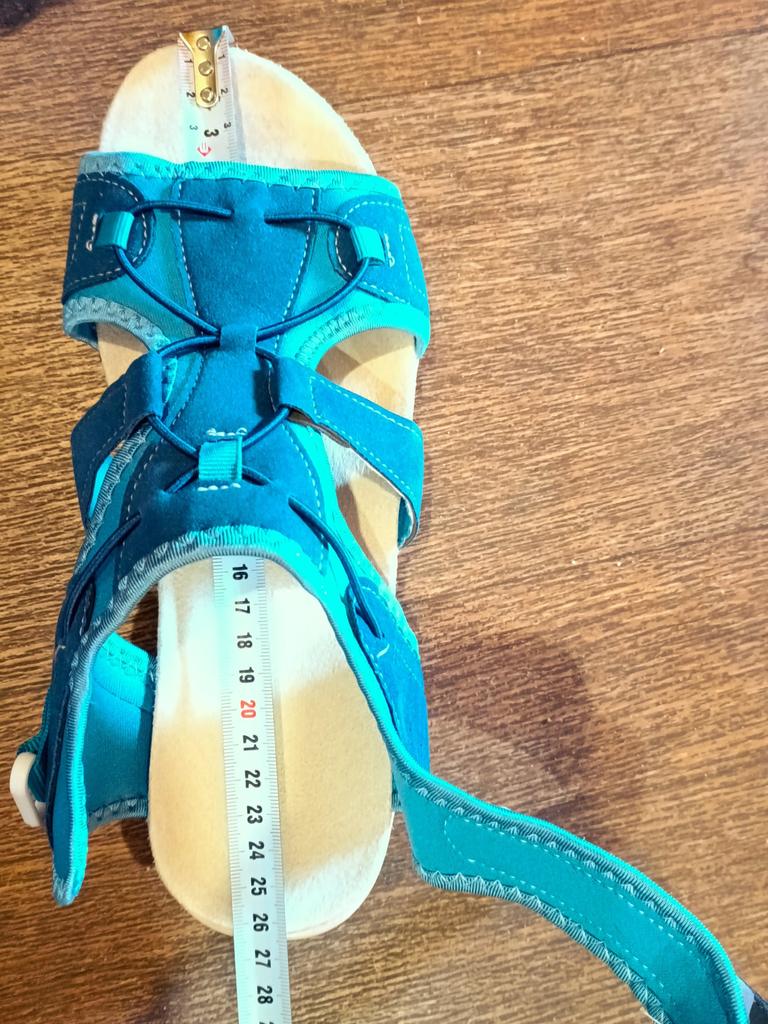 The size fit, but they are not very good for the width of the foot... Like for a high instep. In color, they are a delicate blue... The sole is normal! I thought it would be possible to tighten them as much as possible, but the only fixation is the side Velcro...