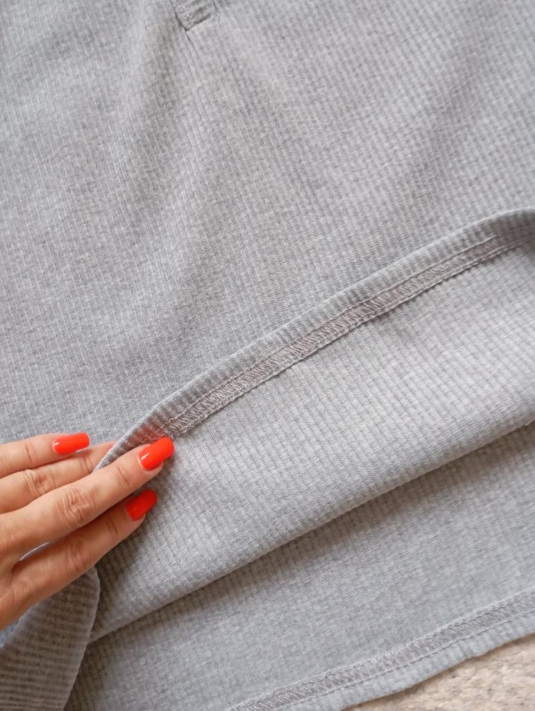At first glance, the T-shirt is not bad. But the bottom edge is already stretched and hanging, it looks ugly. So after washing it will definitely spread in all directions. And the length does not match the photo. You will have to trim it a little.