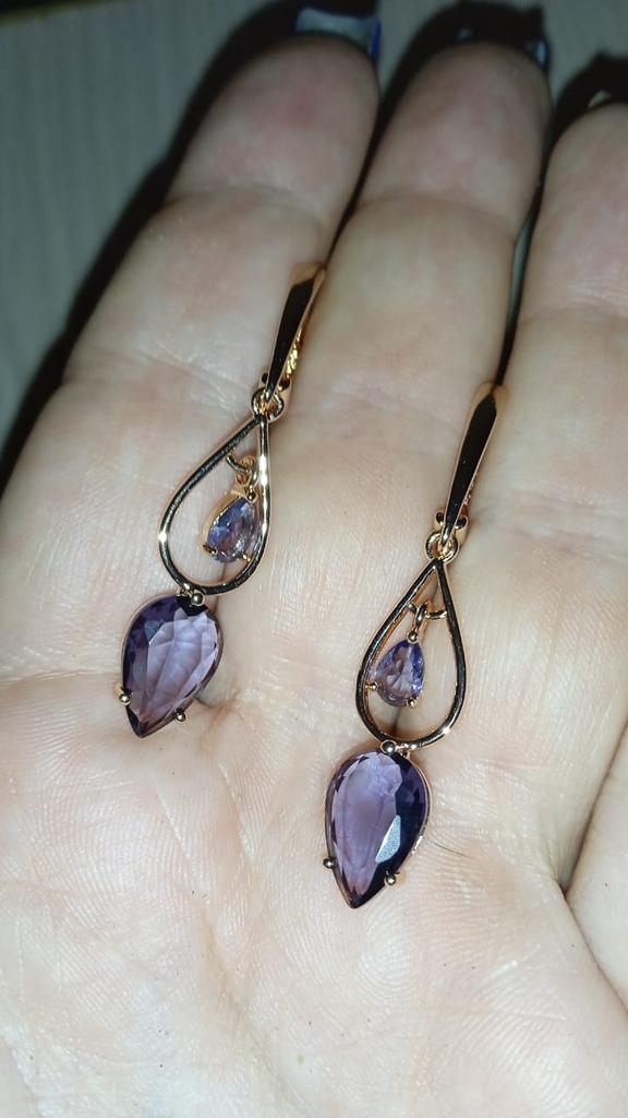 Drop Shape Purple Zircon Long Pendant Earrings for Women Fashion Gold Color Accessories Wedding Jewelry