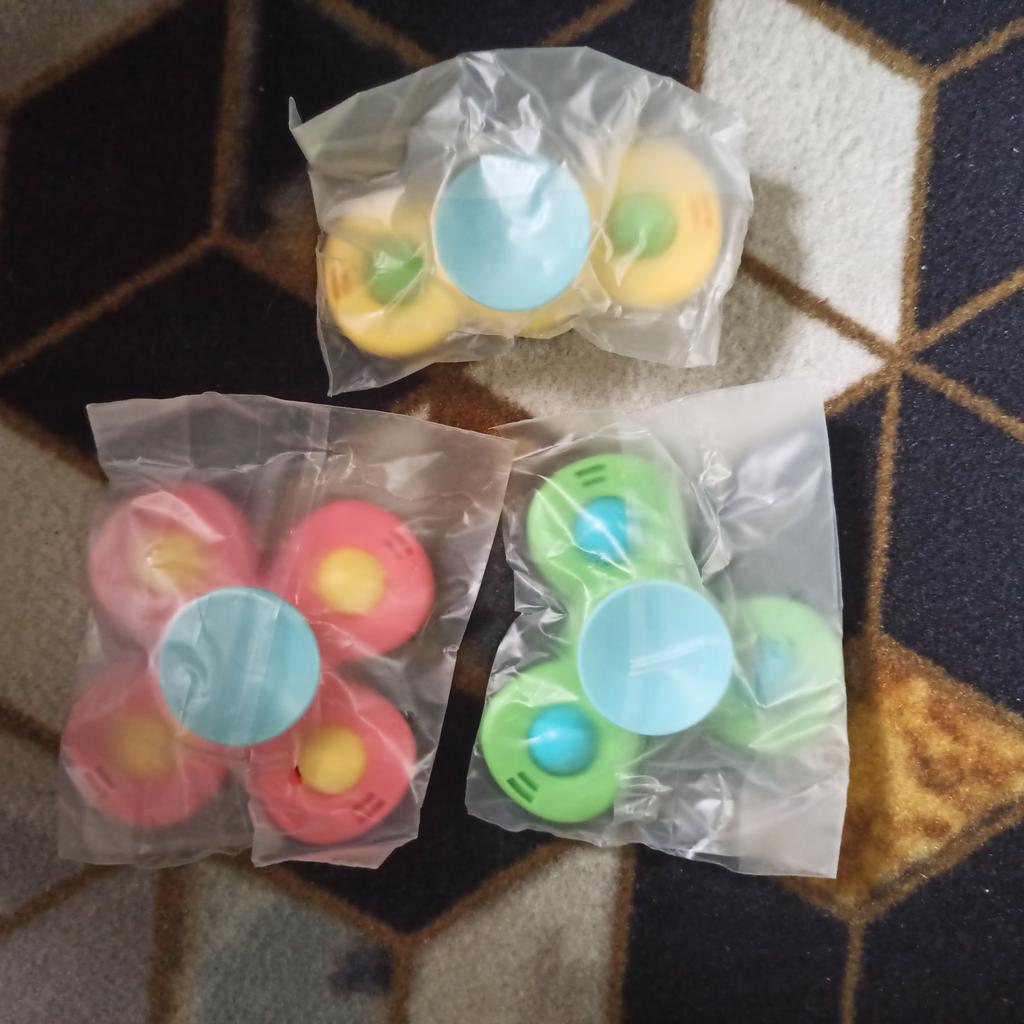 Very cool spinners, good packaging - a bright box, you can take it as a gift. They are not loud, they will not scare the child. Came packed in two! boxes, everything is intact. The suction cup attaches very well to any surface. Silicone pads on the edges!
