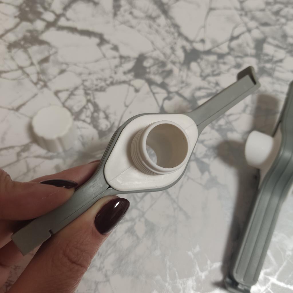 Satisfied. It is possible to put on an open package with cereals - it is convenient. A hook was included as a gift. Thank you)