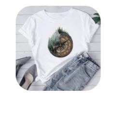 (Asian Size) Women Print Tee Cartoon Adventure Trend Lovely Top Fashion T Shirt Woman Female Clothing Short Sleeve Graphic T-shirts