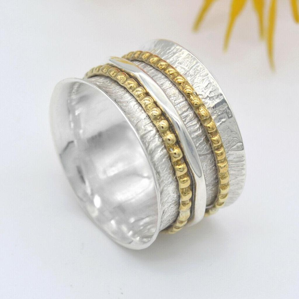 Meditation Two Tone Spinner Ring Solid 925 Sterling Silver Jewelry Statement Ring