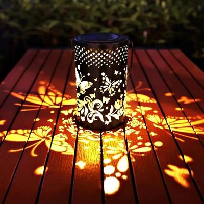 New Type of Solar Butterfly Lamp, Iron Hollow Lantern, Outdoor Waterproof Courtyard Decoration, Solar Projection Lamp