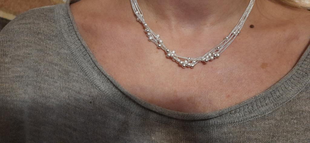 Great little necklace, the beads are not soldered, they move along the chains