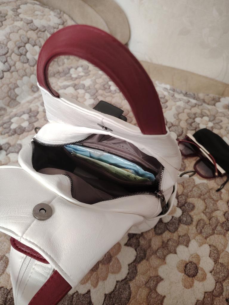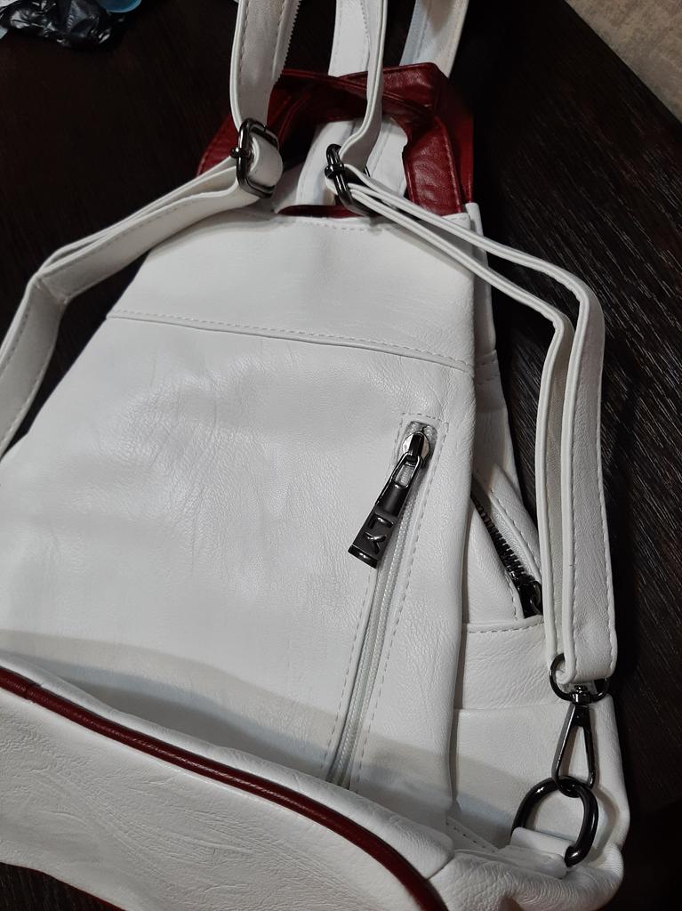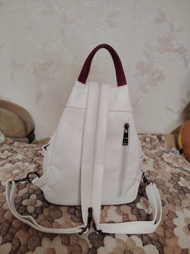 Very convenient and comfortable to wear. Those who think that white is only for summer are mistaken, it is very suitable for light beige aviator, or if you have a white down jacket. The backpack goes well with both a sporty style and with skirts and dresses, a universal option. I regret that I did not buy it earlier, it replaces all my bags! 😍