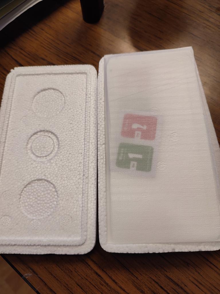 The product arrived in a polystyrene box sealed with tape. It is of unknown manufacturer and specifications.