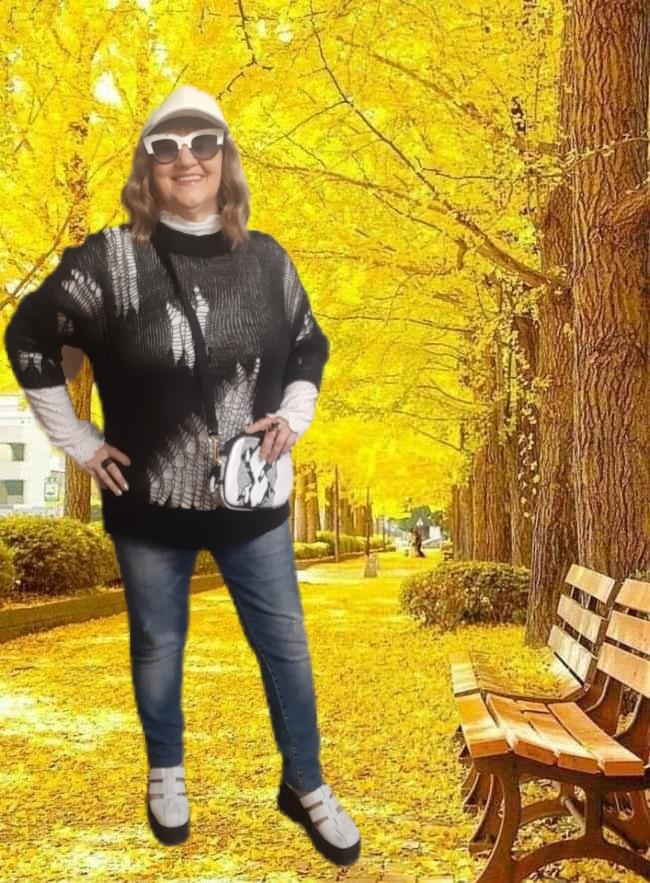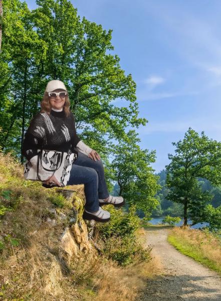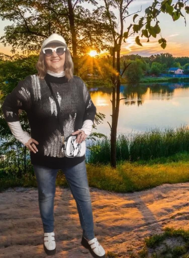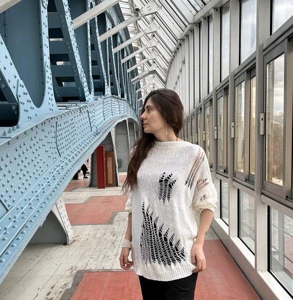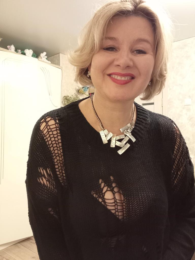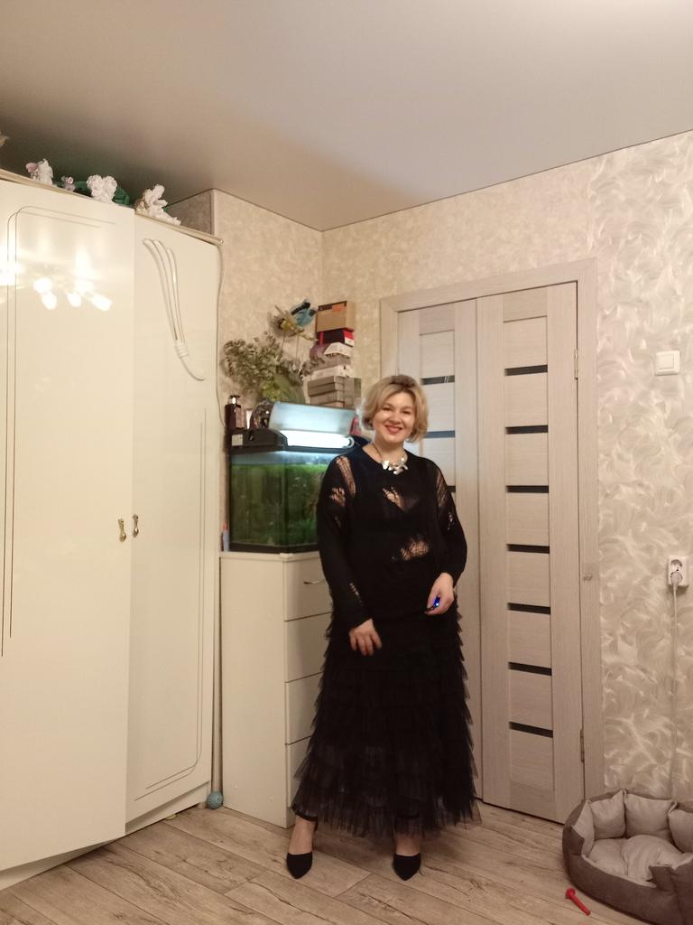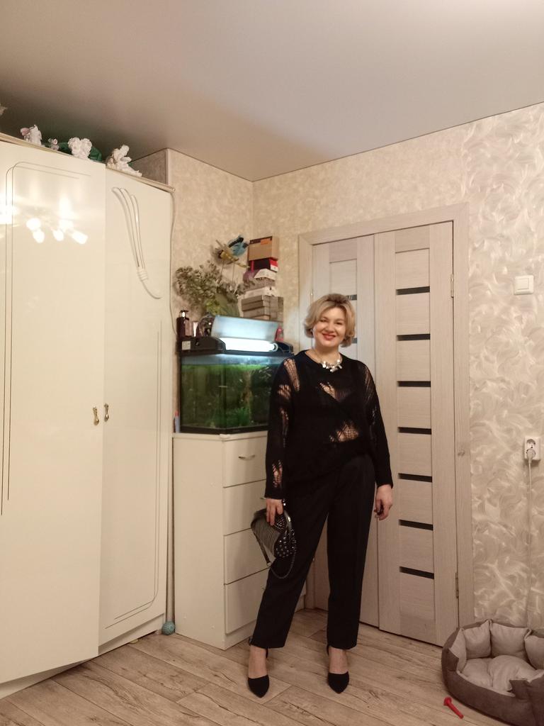 The tunic is very interesting, the size will fit up to size 58! It definitely needs to be worn with a contrasting T-shirt)