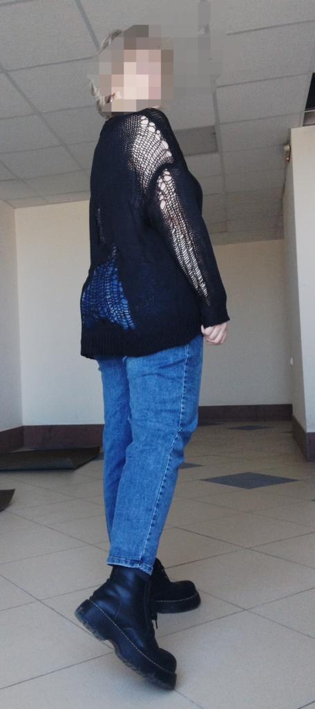 I like this jumper. It is a bit unnecessarily wide. The seams are little rude and thick. All edges, could be finished by more tight “English elastic knitting”, but they are same amorphous like entire sweater- I doubt how it’s gonna keep shape after wearing/ washing. Knitting threads look 100% synthetic, but manufacturer declared some %of cotton, which is not confirmed by any attached label. However it is soft and silky, pleasant to the skin.